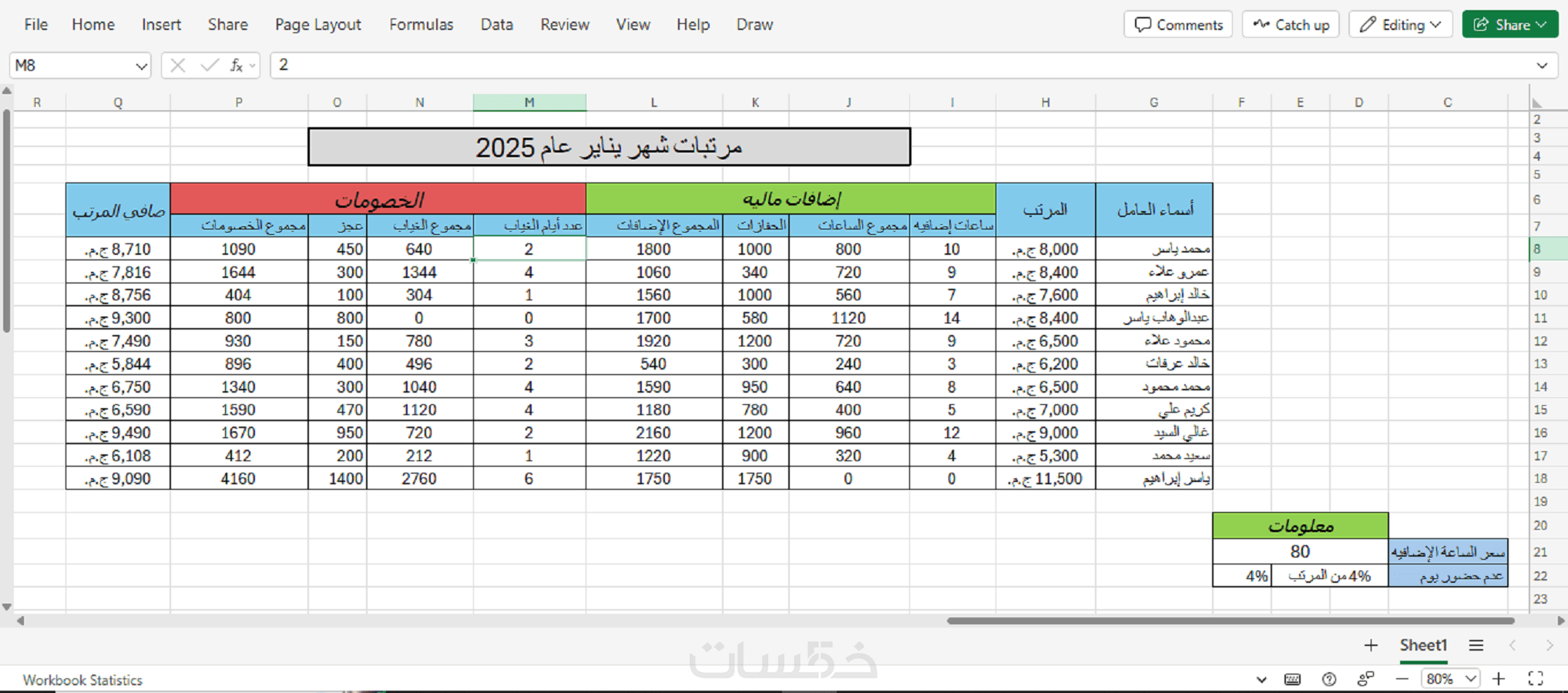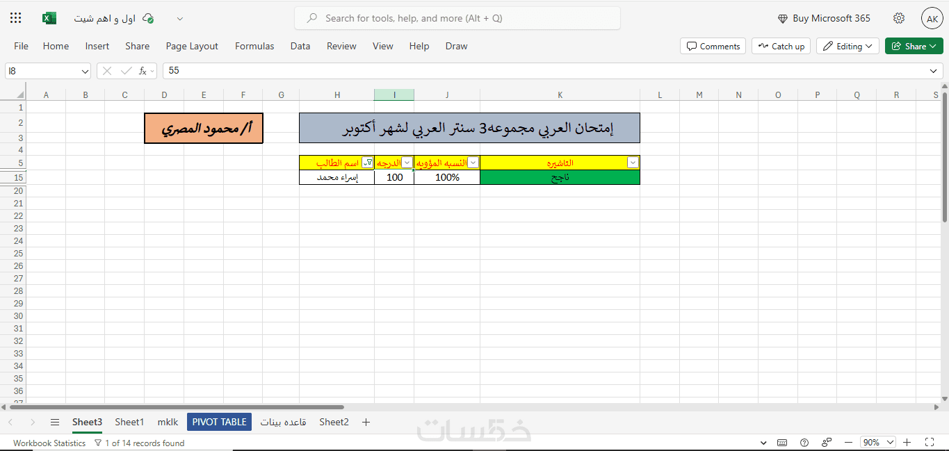 تنسيقات بسيطة للجداول (حدود – ألوان – توضيح الخلايا المهمة).