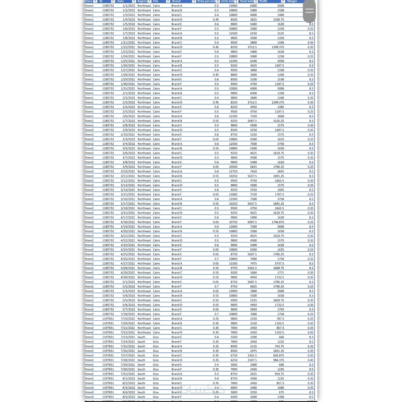 إدخال وتنظيم البيانات حتى 500 خلية (صفوف×أعمدة)