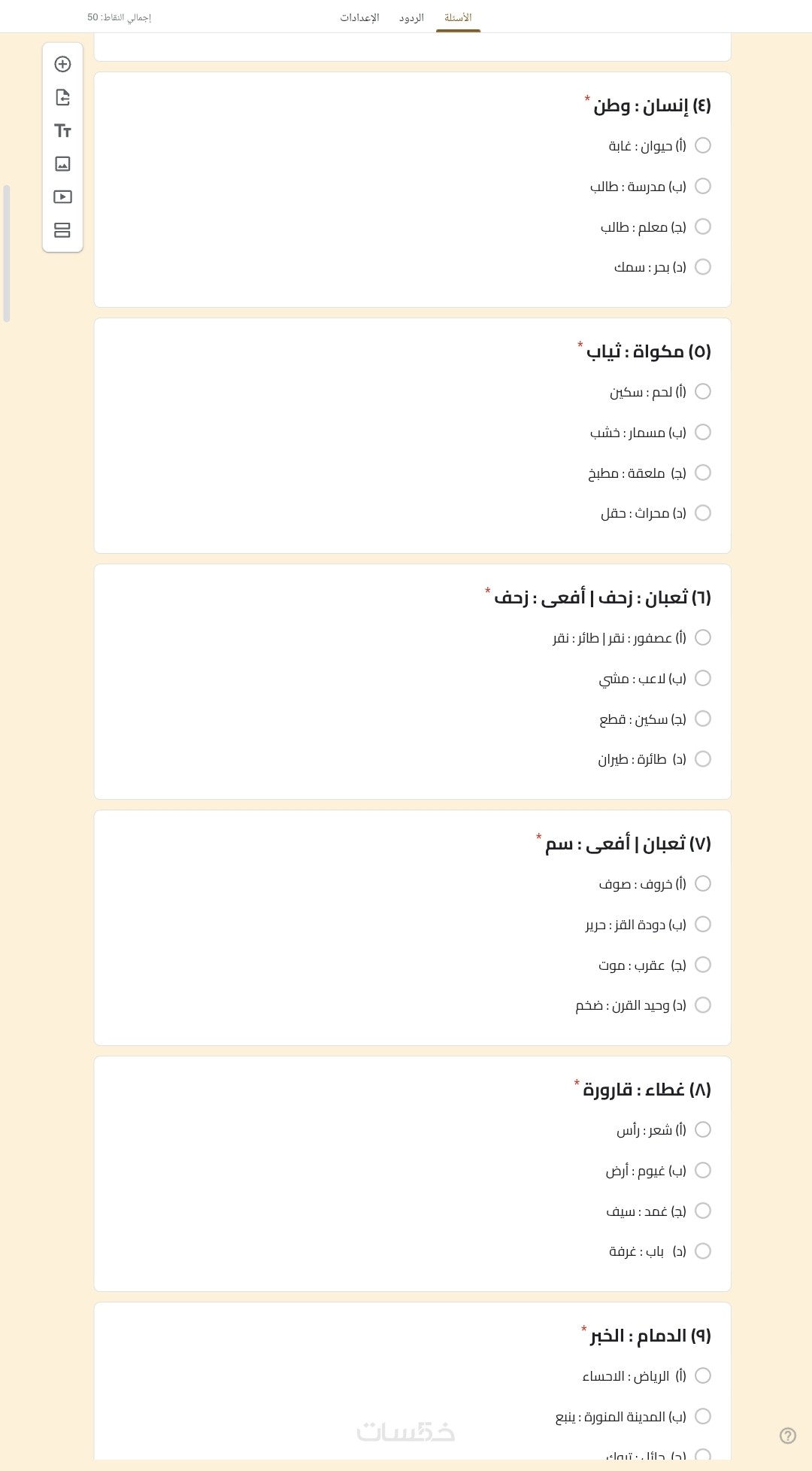 سعر الخدمة يشمل انشاء من 25 حتى 50 سؤال.