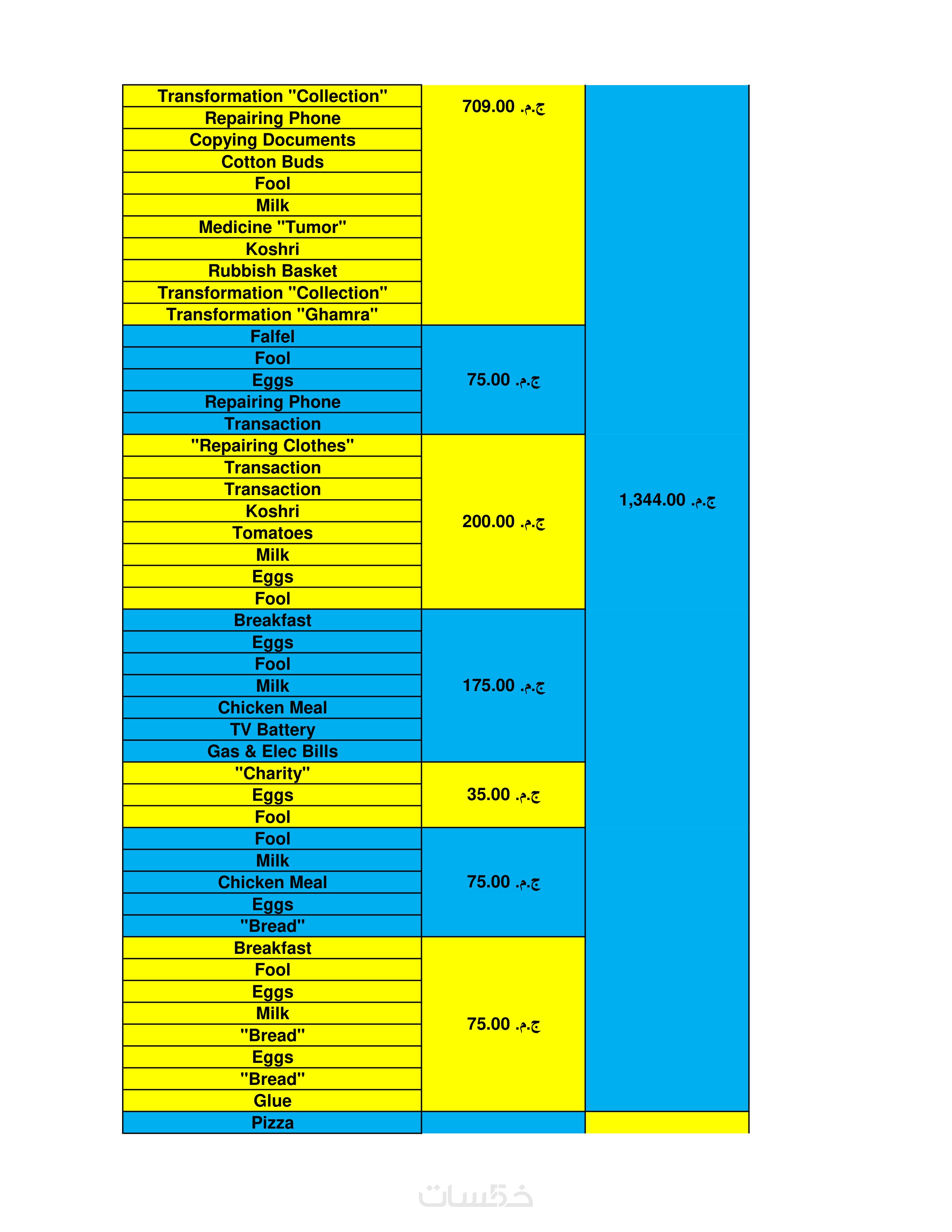 الصف الواحد يعتبر: اسم – رقم – بريد – عنوان – أي معلومة بسيطة.