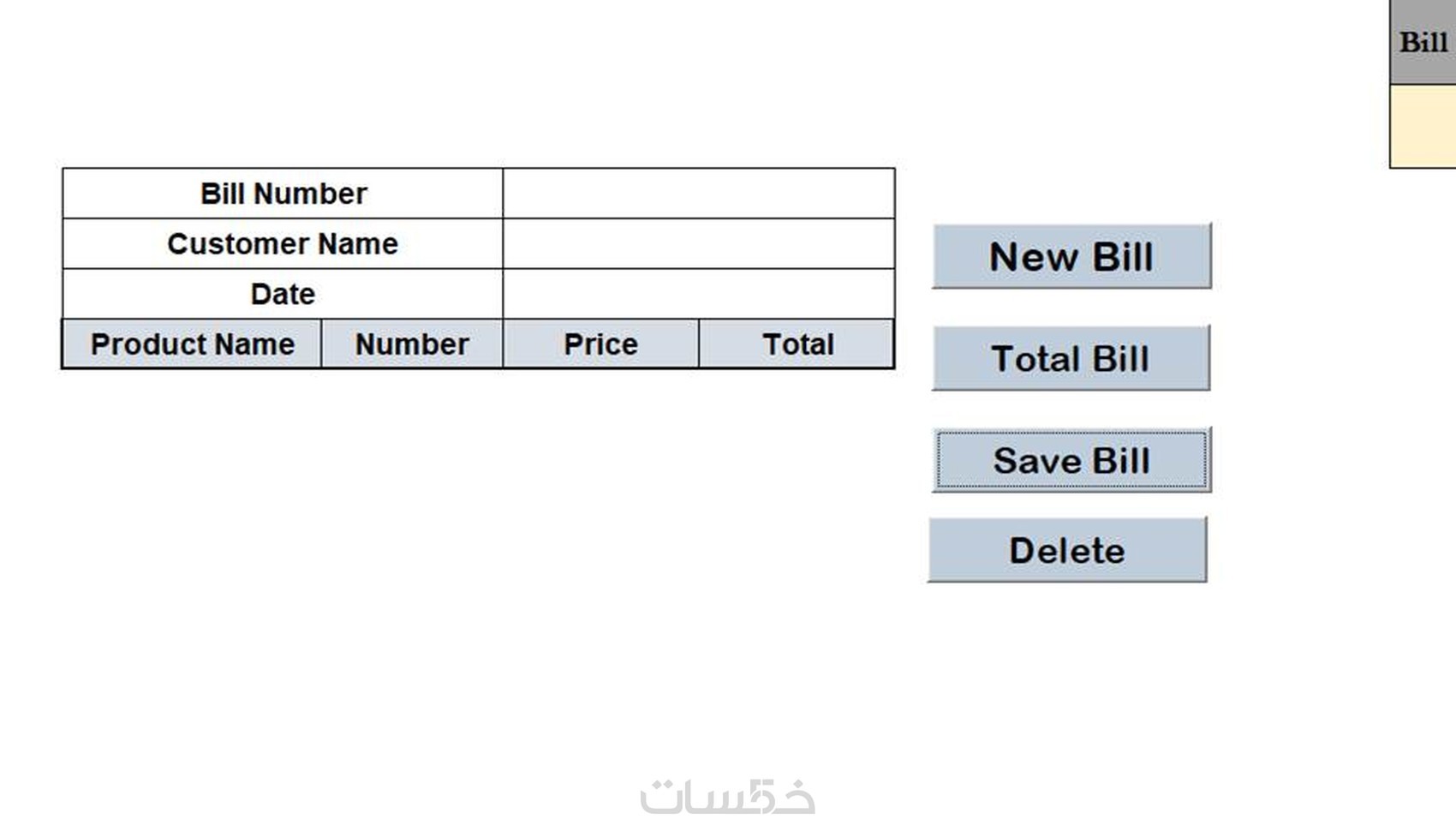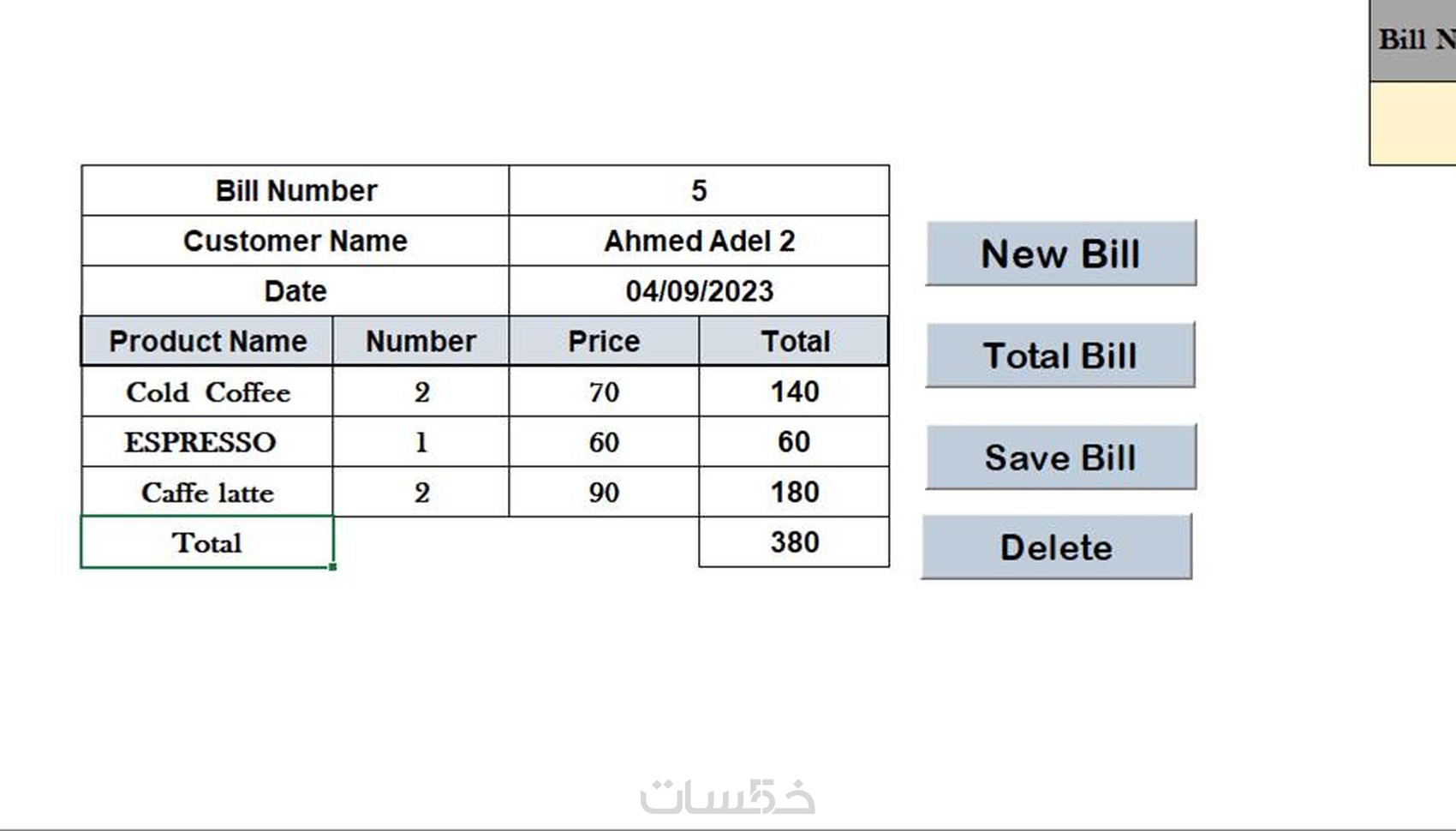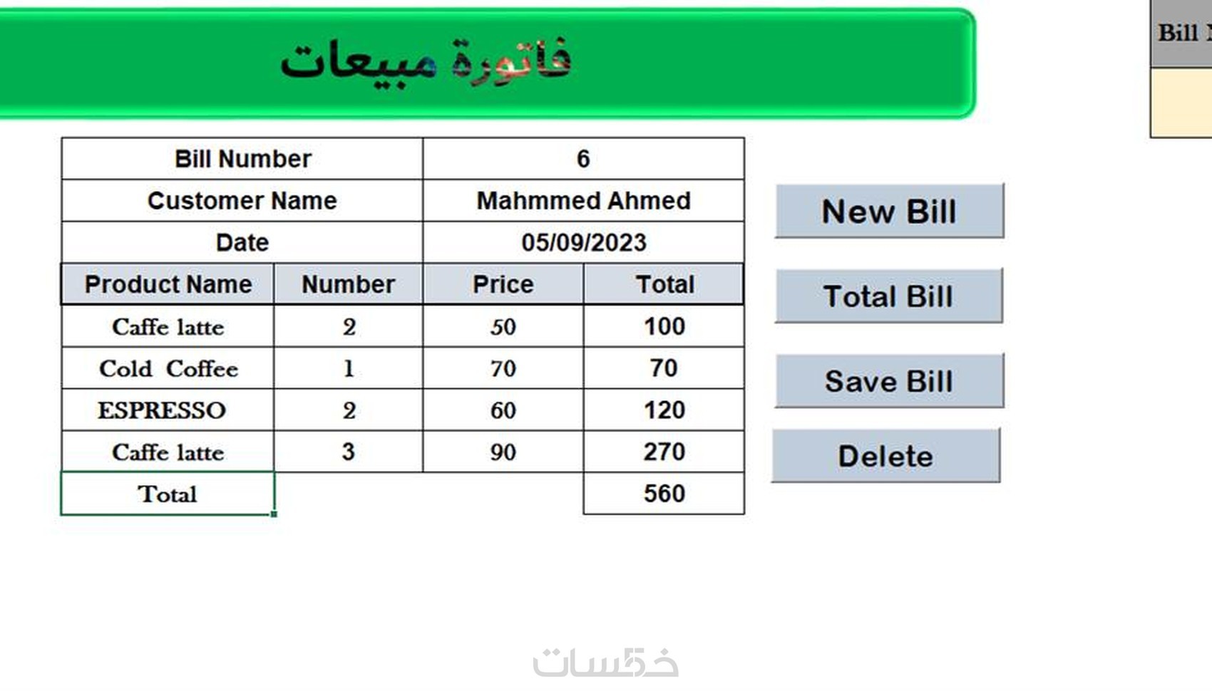 7) الفاتورة باستخدام EXEL