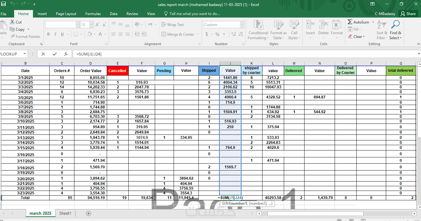 عمل تقرير بيانات علي الاكسل 1000 خلية