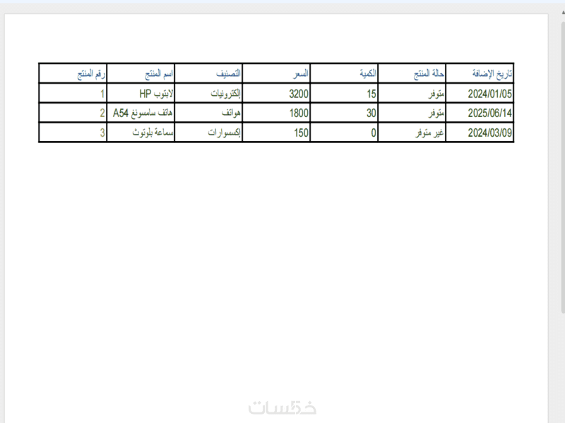 -إدخال بيانات منتجات (اسم ، سعر ،وصف...).