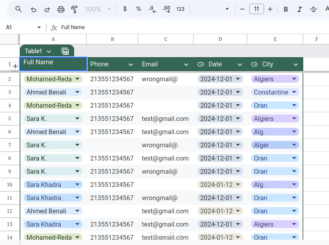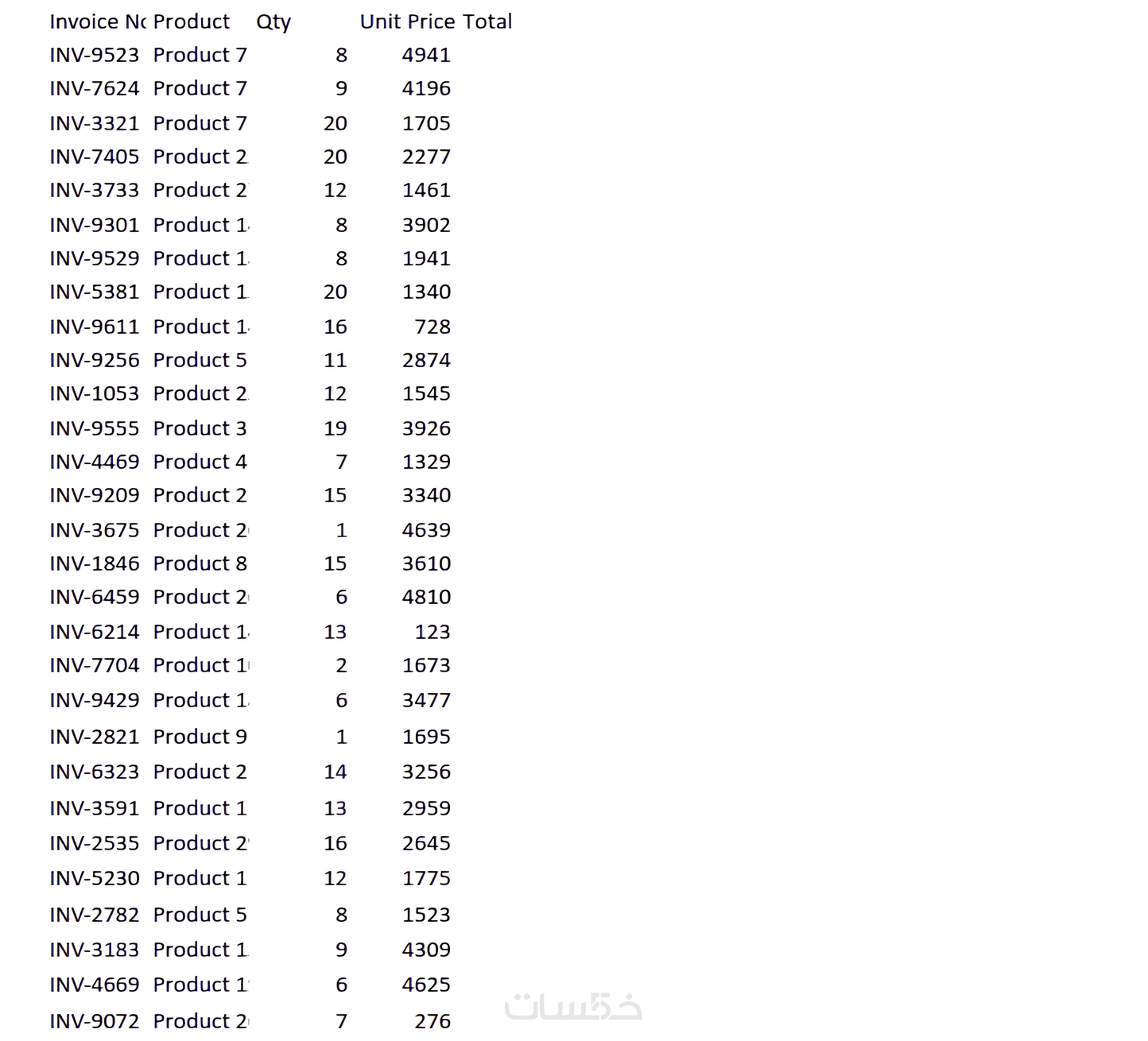 عناوين، محاذاة، ترتيب الأعمدة والصفوف لسهولة التصفح والتحليل.