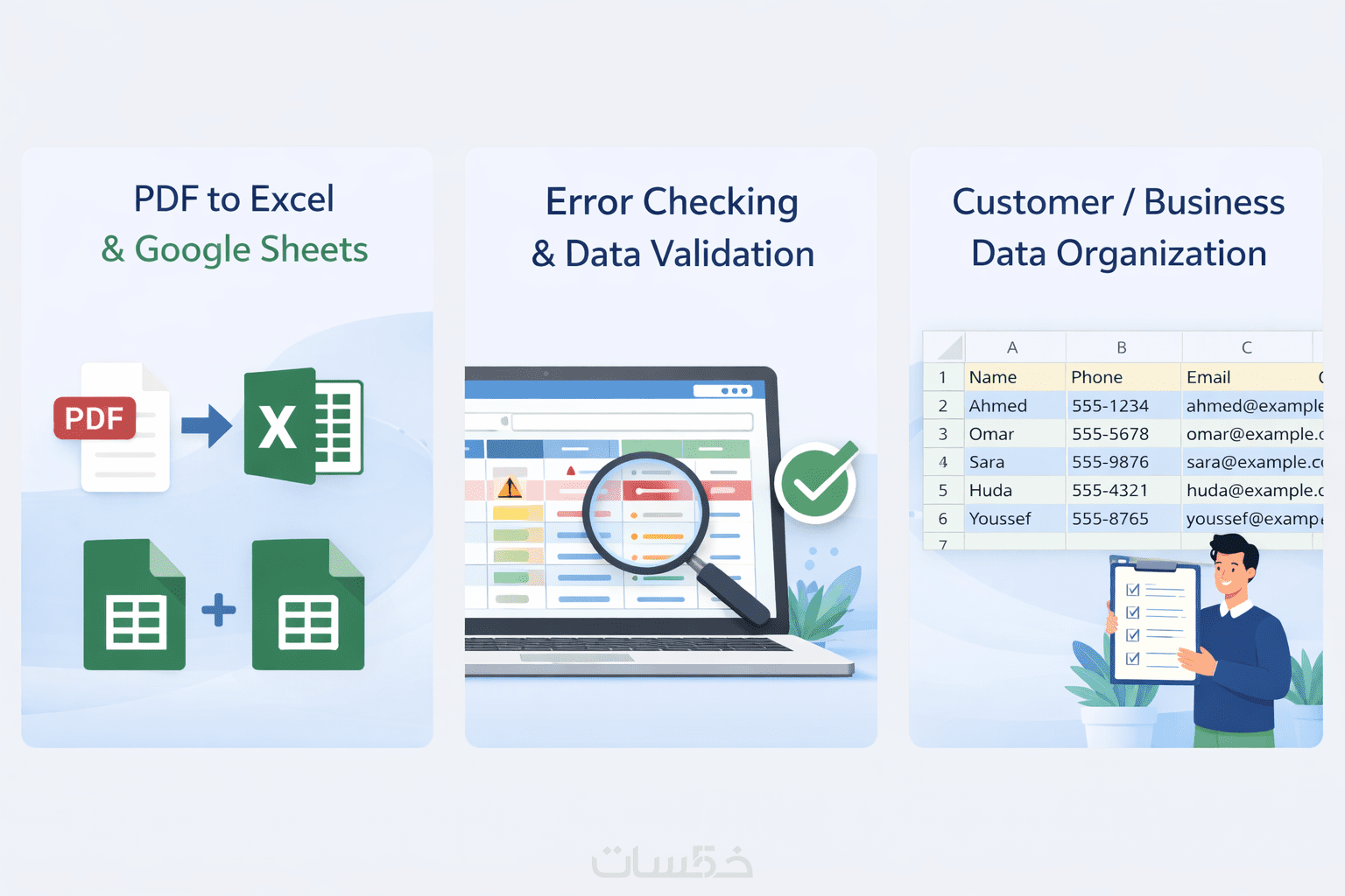 ✔ إدخال البيانات من ملفات PDF أو صور إلى Excel أو Google Sheets