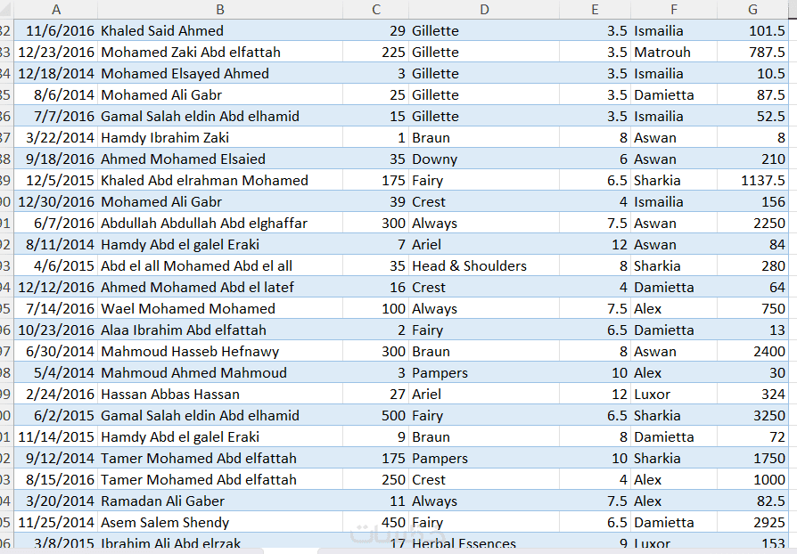 الخدمة الاساسية مقابل 100 صف (اي 1000 خلية في الاكسل)