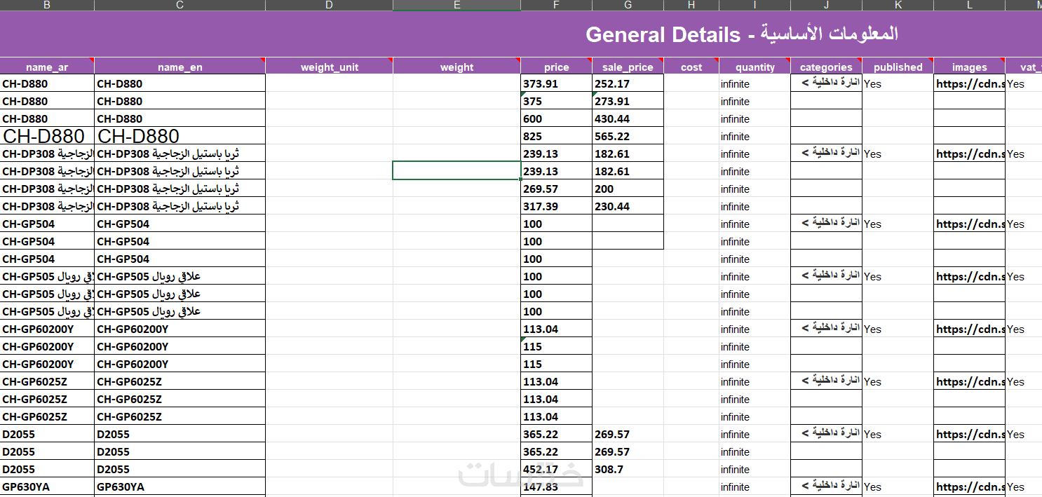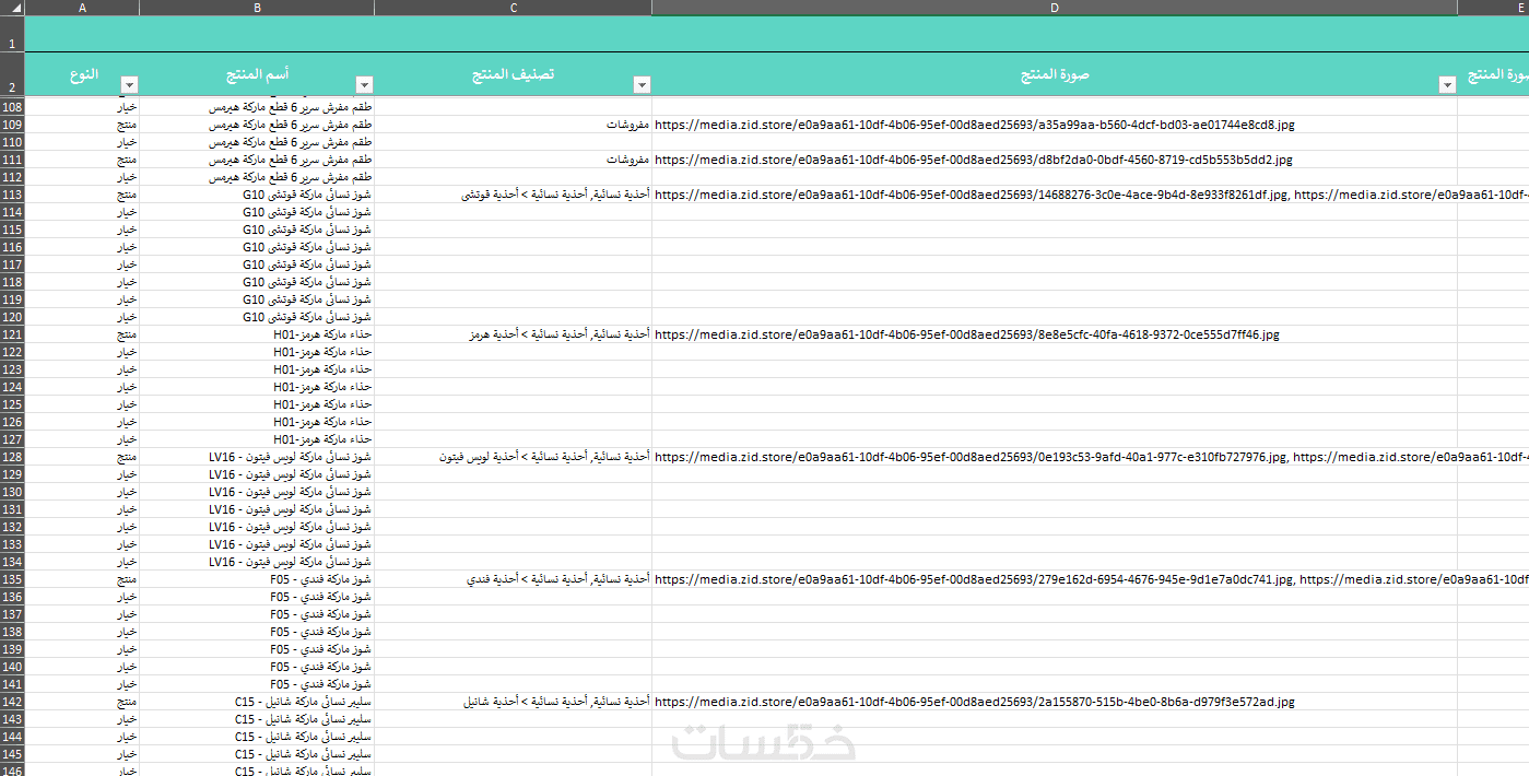 بكامل بيانات المنتجات ( الإسم - الوصف - الاسعار - الصور - التصنيفات - العلامه التجارية )