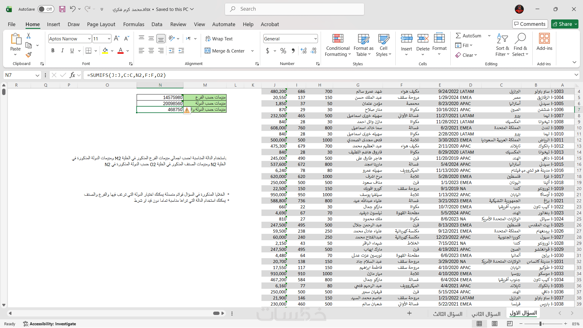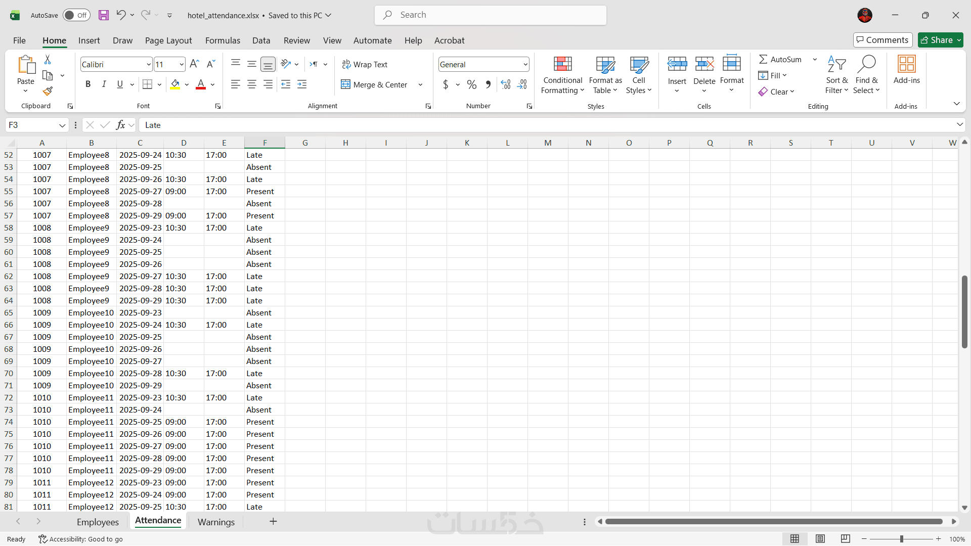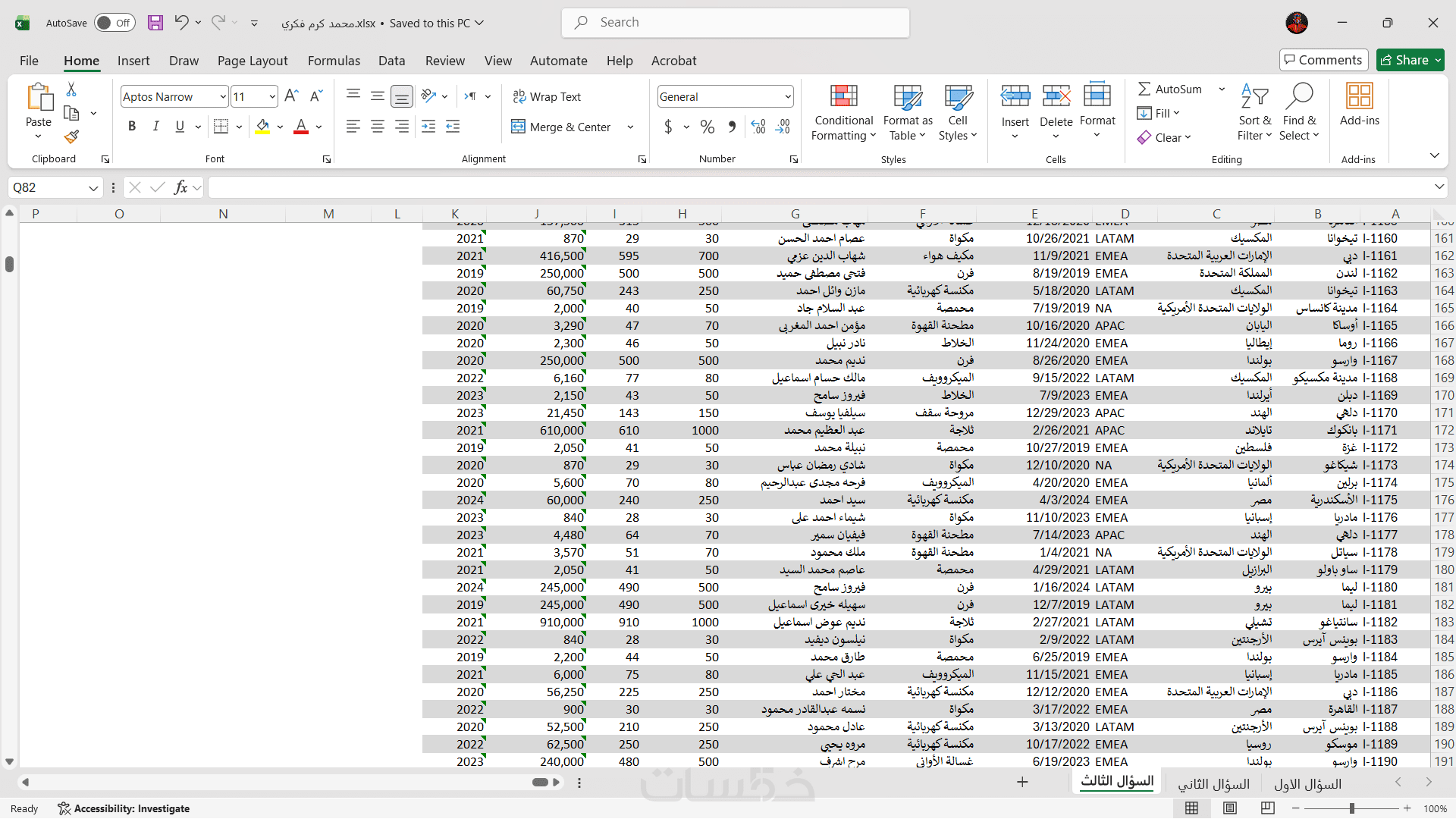 * تسليم ملف الإكسل منظما.