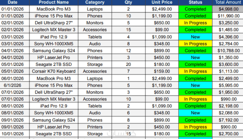 ستحصل على ملف إكسل منسق بالكامل وجاهز للاستخدام الفوري.