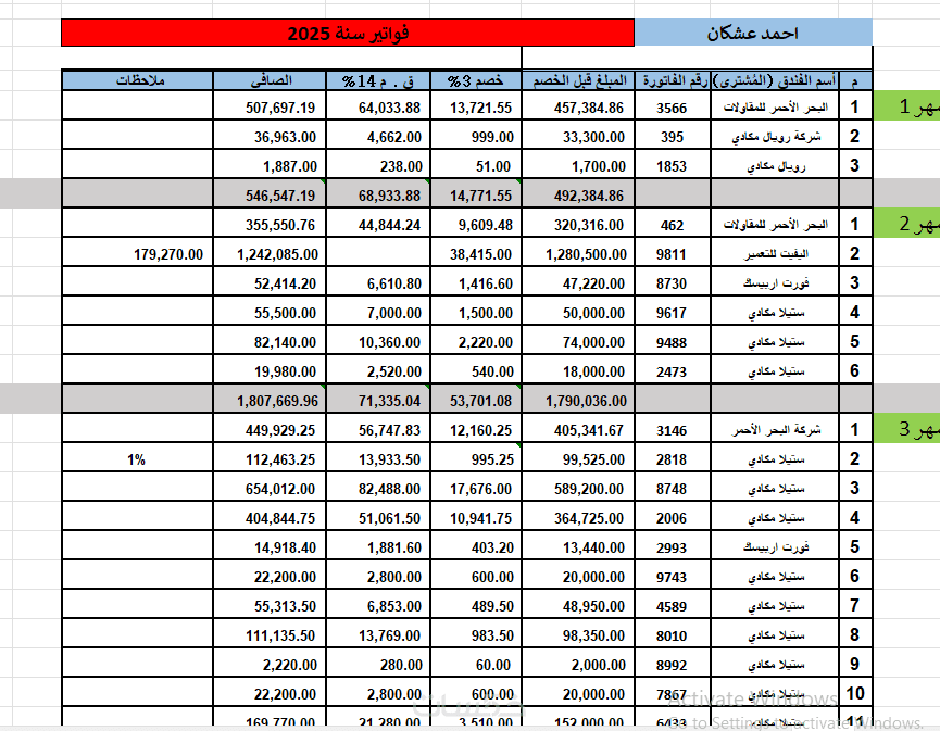 يتم تنظيم البيانات في جداول مرتبة بأعمدة واضحة، مع إمكانية الفرز والتصفية لتسهيل البحث، التحليل، وإدارة البيانات بطريقة احترافية تسهّل استخدامها في التقارير والأعمال اليومية.