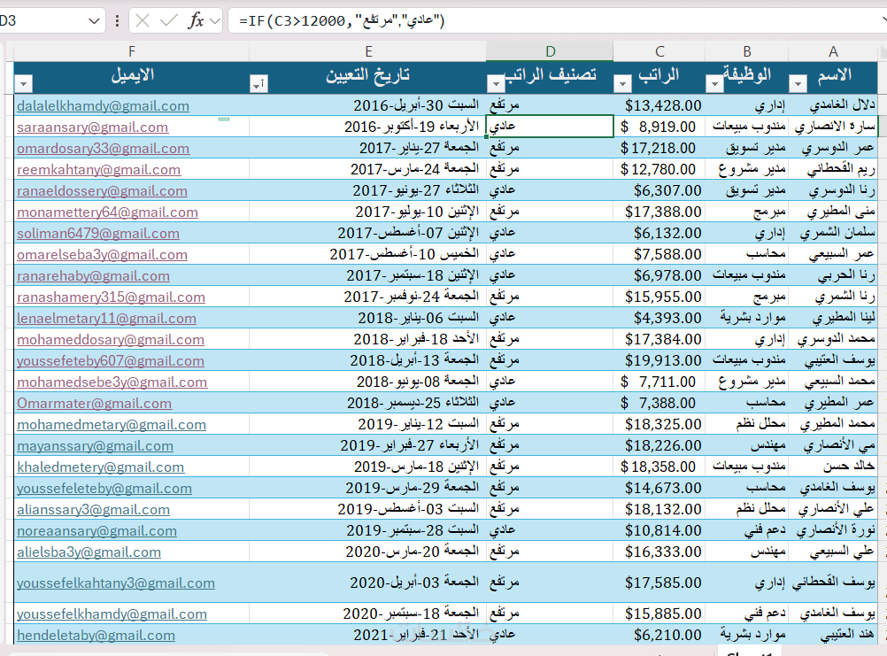 تنسيق كامل للملف (ألوان، خطوط، حدود) ليكون جاهزاً للعرض.