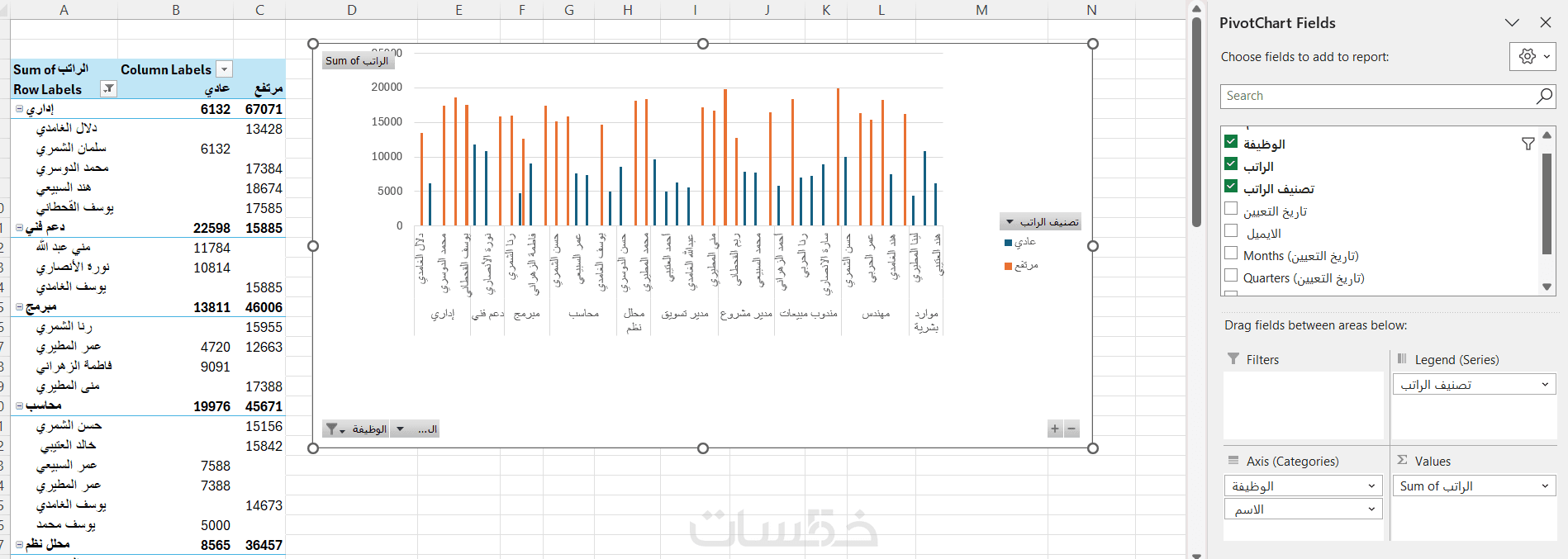 انشاء 3 جداول محورية (Pivot Tables) مع رسوم بيانية (Charts) لتلخيص البيانات