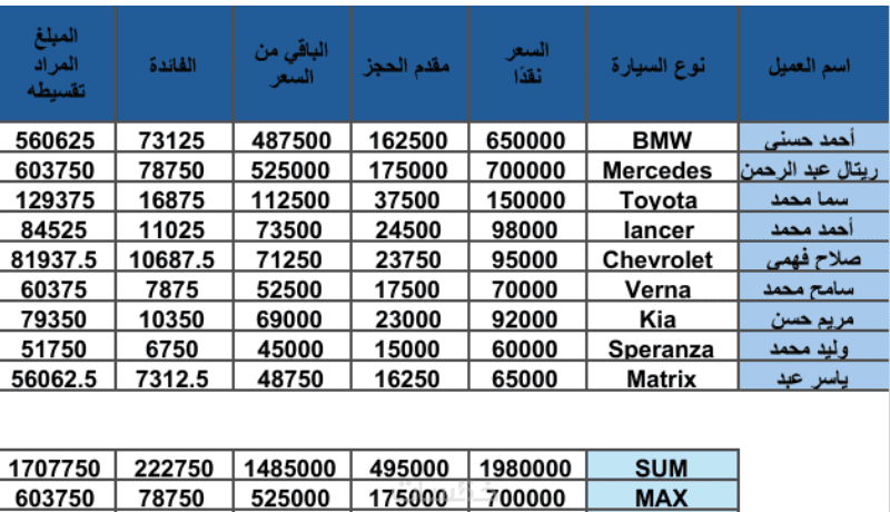 ترتيب البيانات وتنسيقها بصرياً لتسهيل الاستخدام