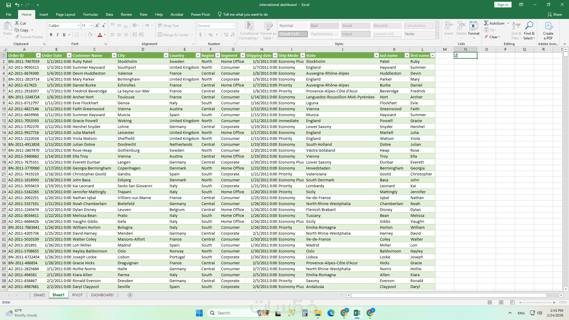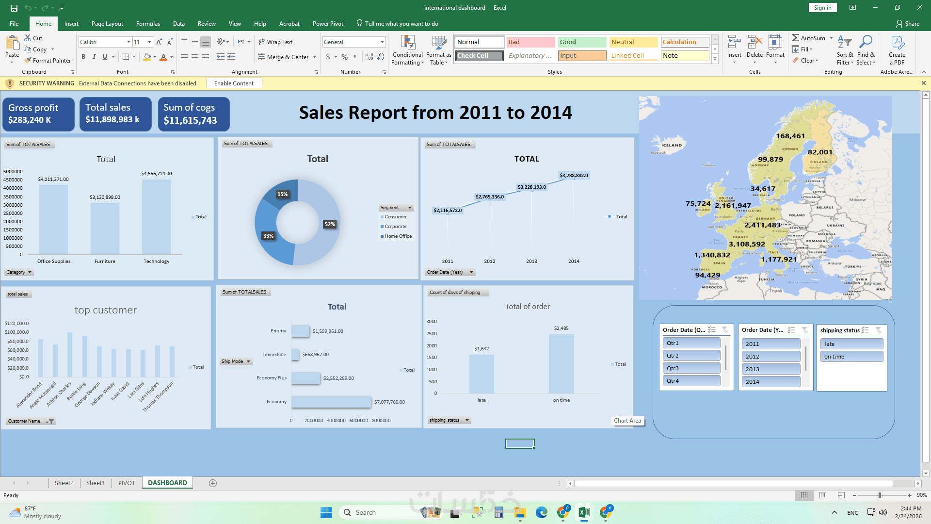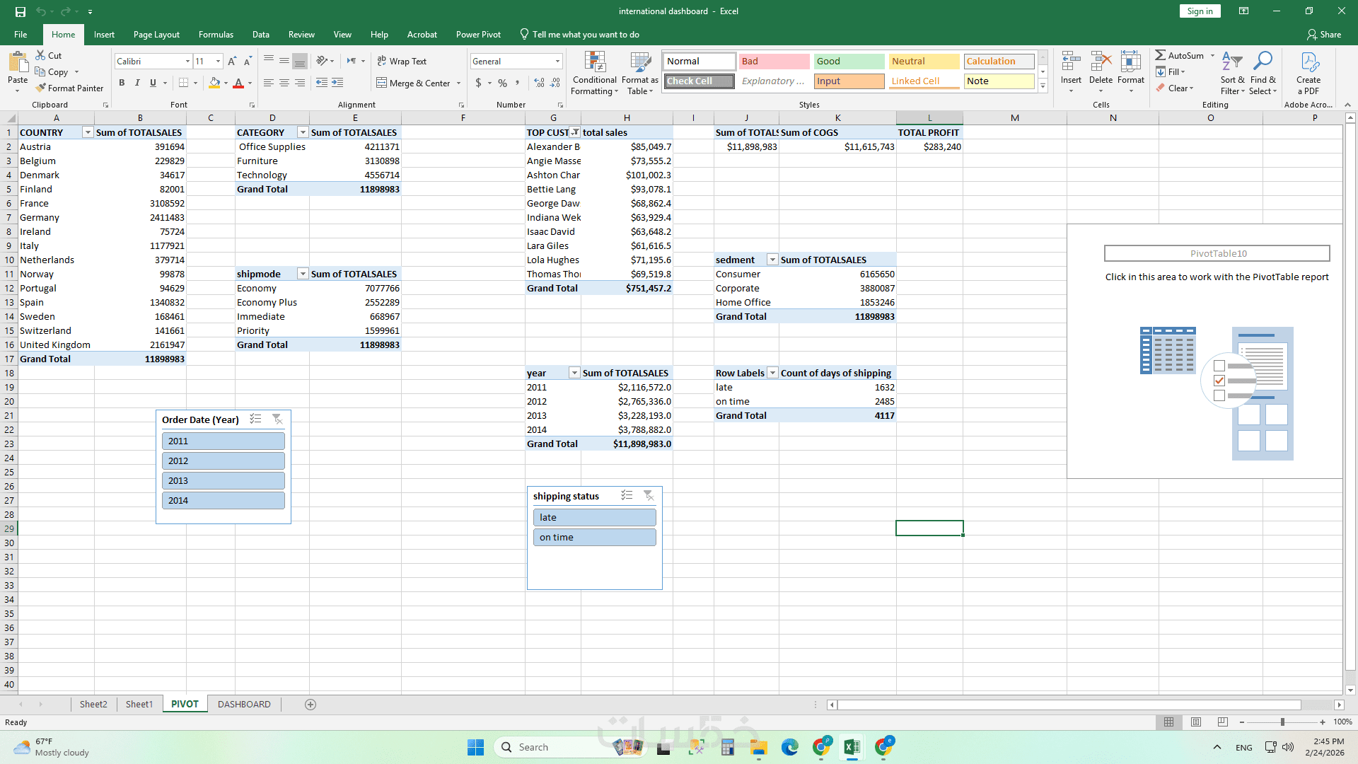 عمل تنسيق شرطي(conditional formatting) , وتصميم جداول محواريه(pivot table) لتلخيص البيانات .