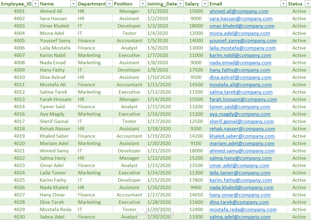 ترتيب وتنظيم المعلومات في جداول Excel أو Google Sheets أو قواعد بيانات.