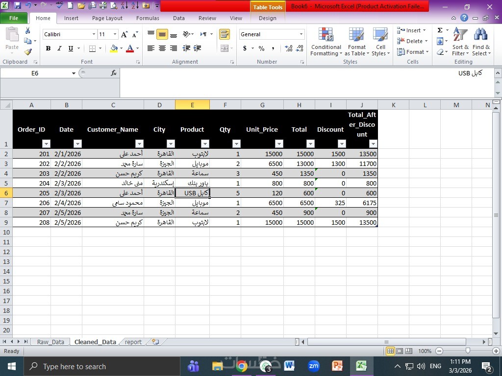• تنسيق الجداول وترتيب البيانات بشكل احترافي