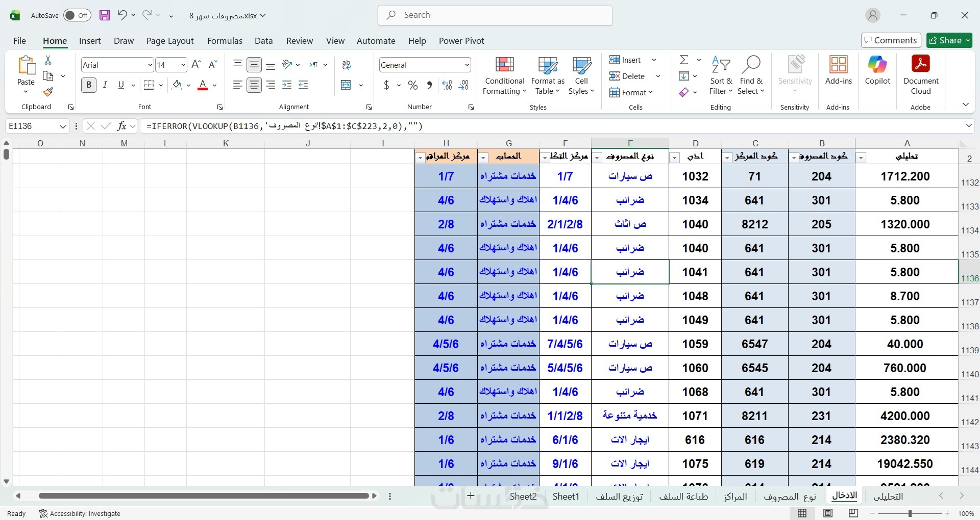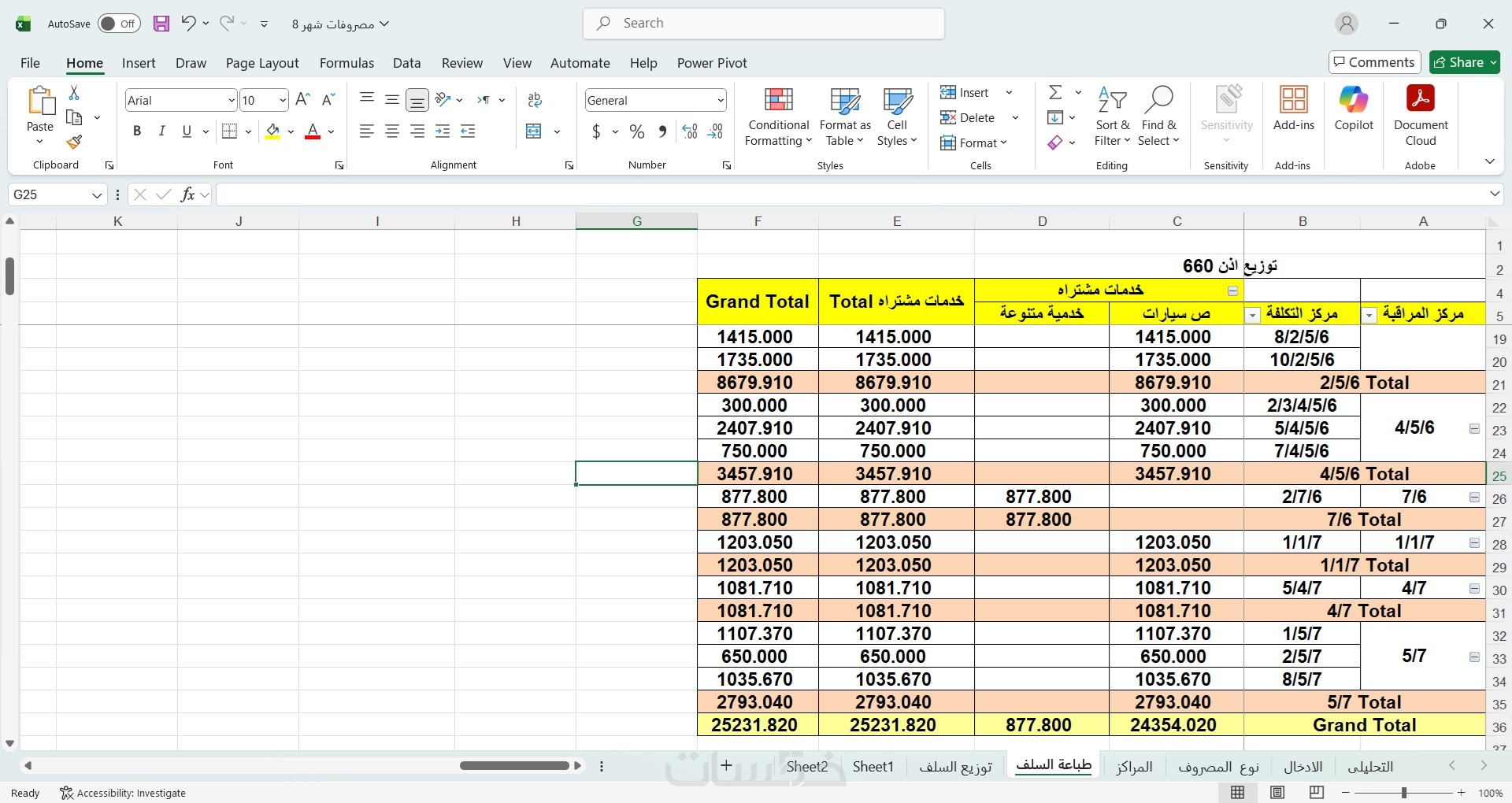 - تنسيق احترافي (ألوان، حدود، خطوط) يسهل قراءة البيانات.