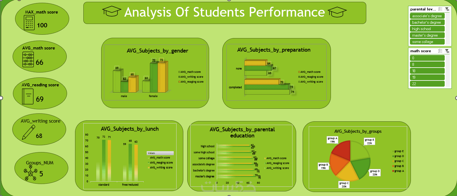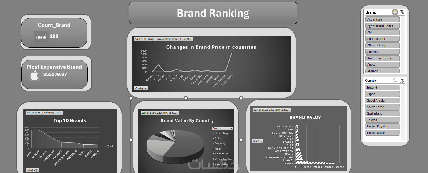 -انشاء Dashboard مكونه من5اشكال بيانيه و Slicer