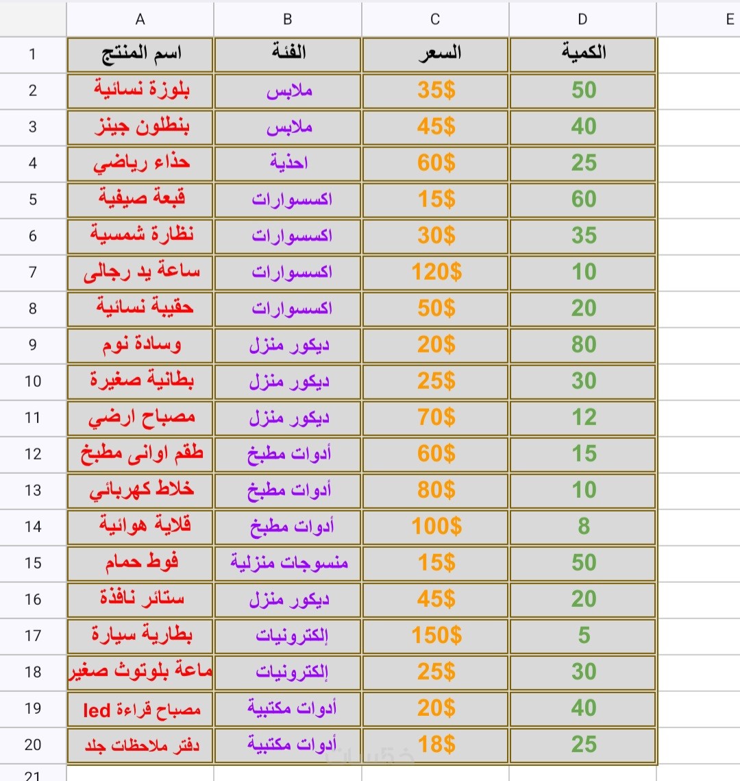 تنظيم البيانات بشكل مرتب وسهل الاستخدام.