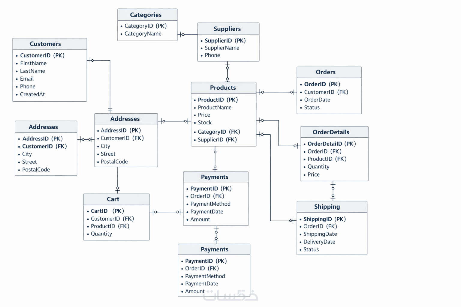 تصميم قاعدة بيانات احترافية مع ERD و SQL