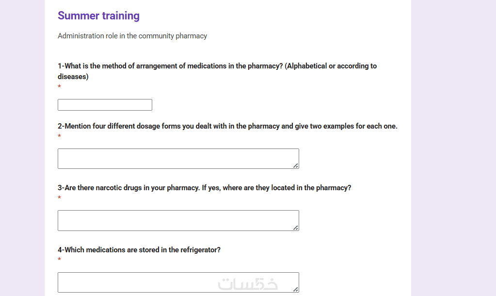 تصميم اختبارات وكويزات لطلبة الصيدلة باستخدام Google Forms