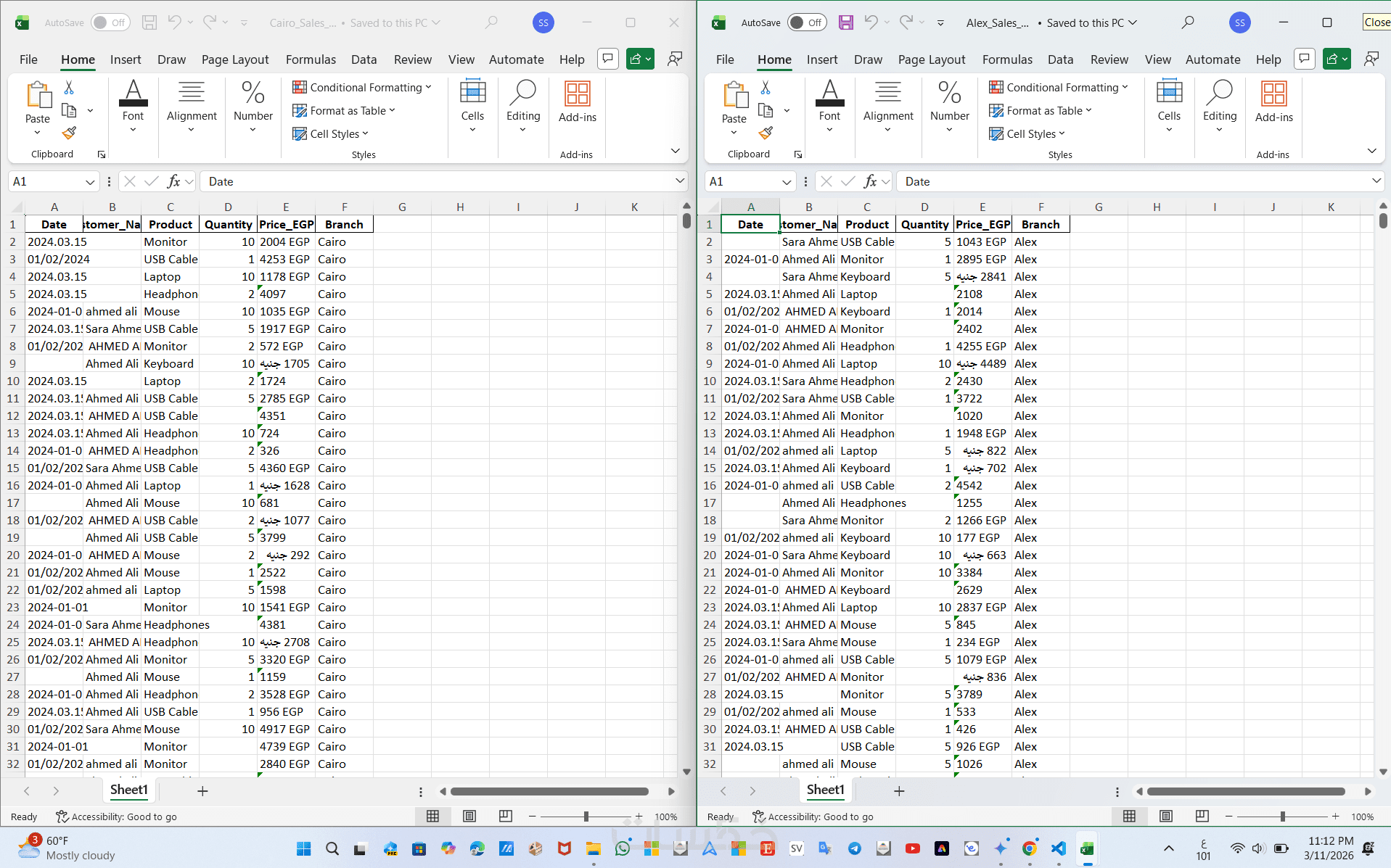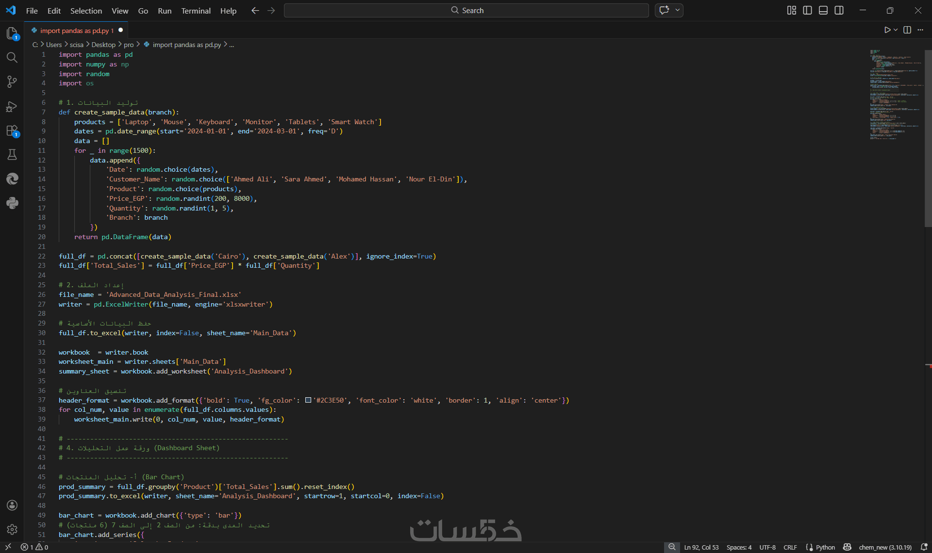 هل تعاني من ضياع الوقت في تنظيم ملفات Excel الضخمة أو تنظيف البيانات يدوياً؟ بصفتي متخصصًا في معالجة البيانات، سأقوم بتحويل بياناتك المبعثرة إلى جداول احترافية ومنظمة برمجياً باستخدام Python.