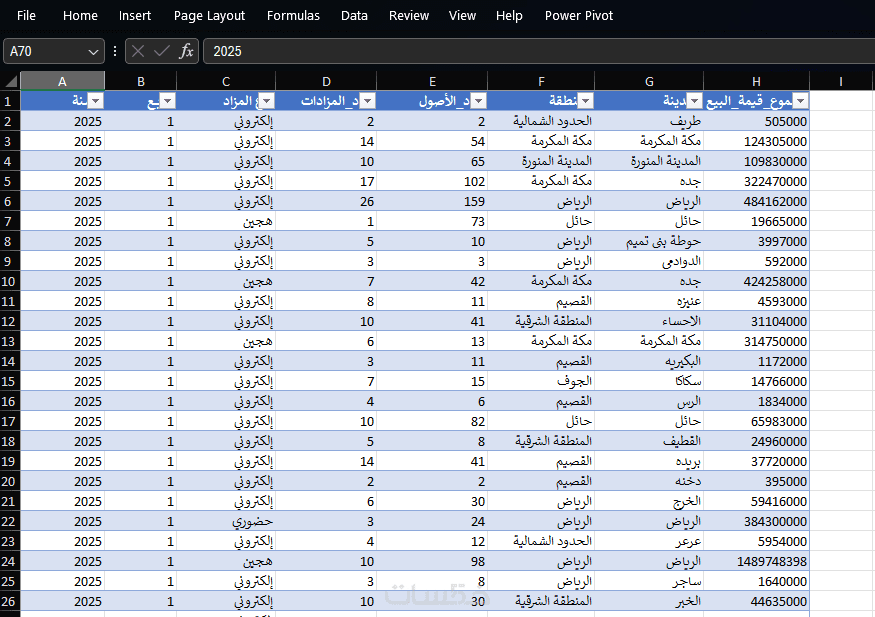 (حتى 200 صف (Row) بحد أقصى 5 أعمدة)