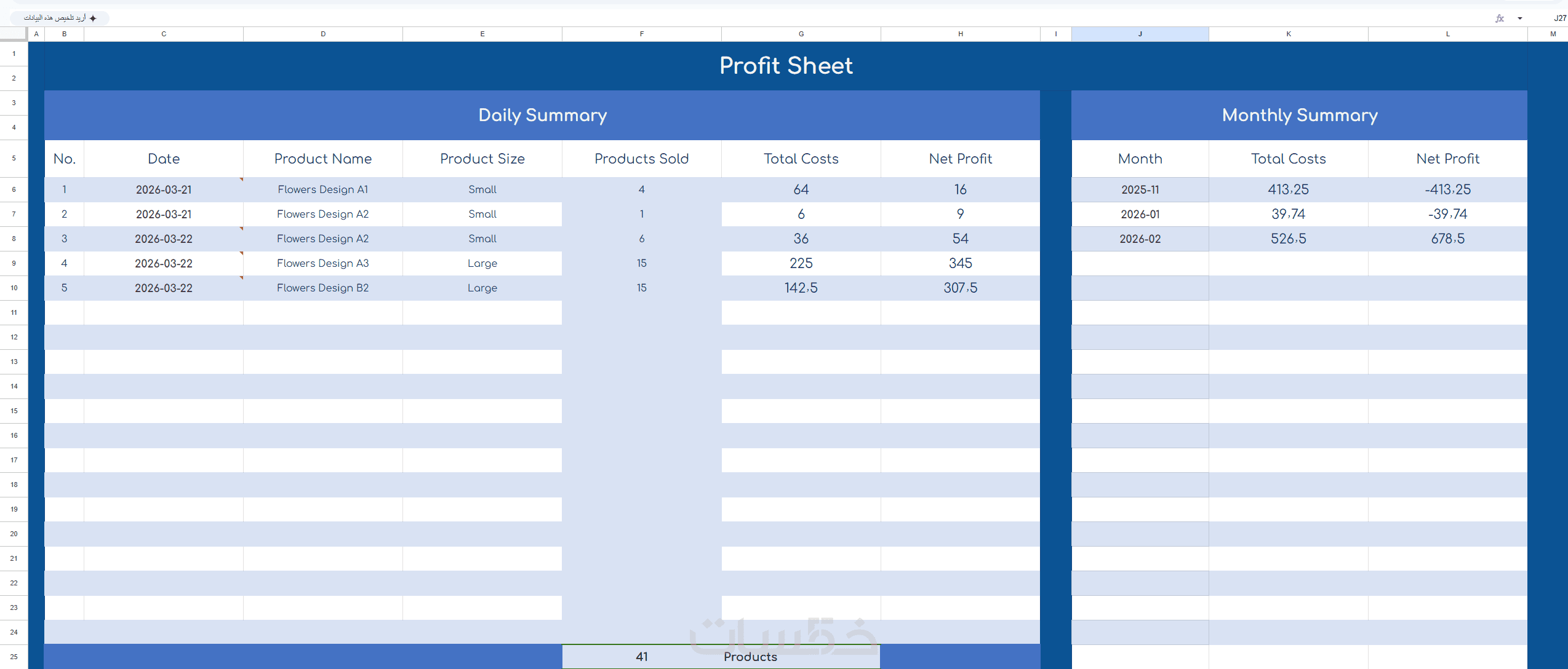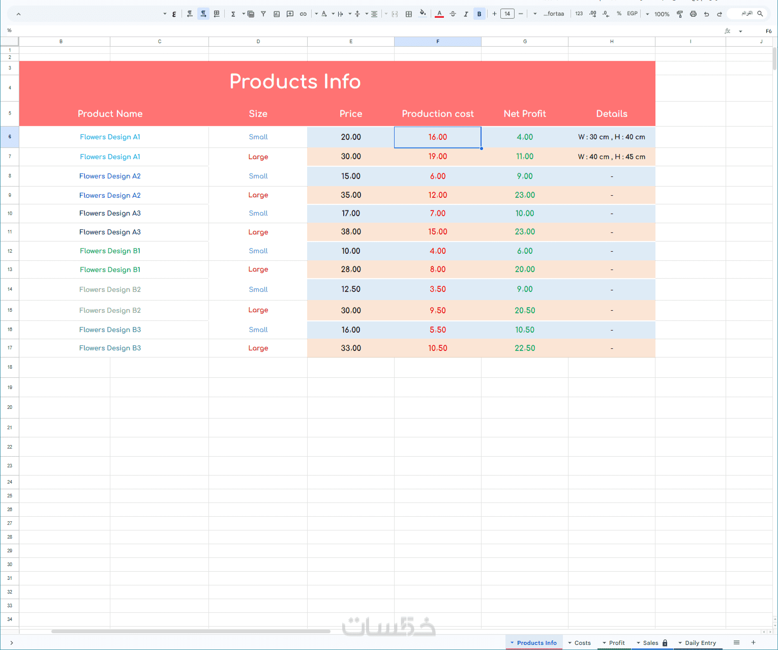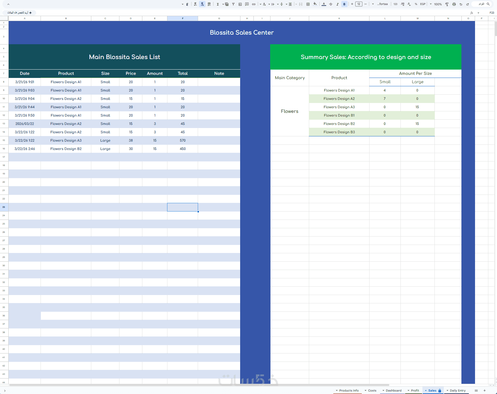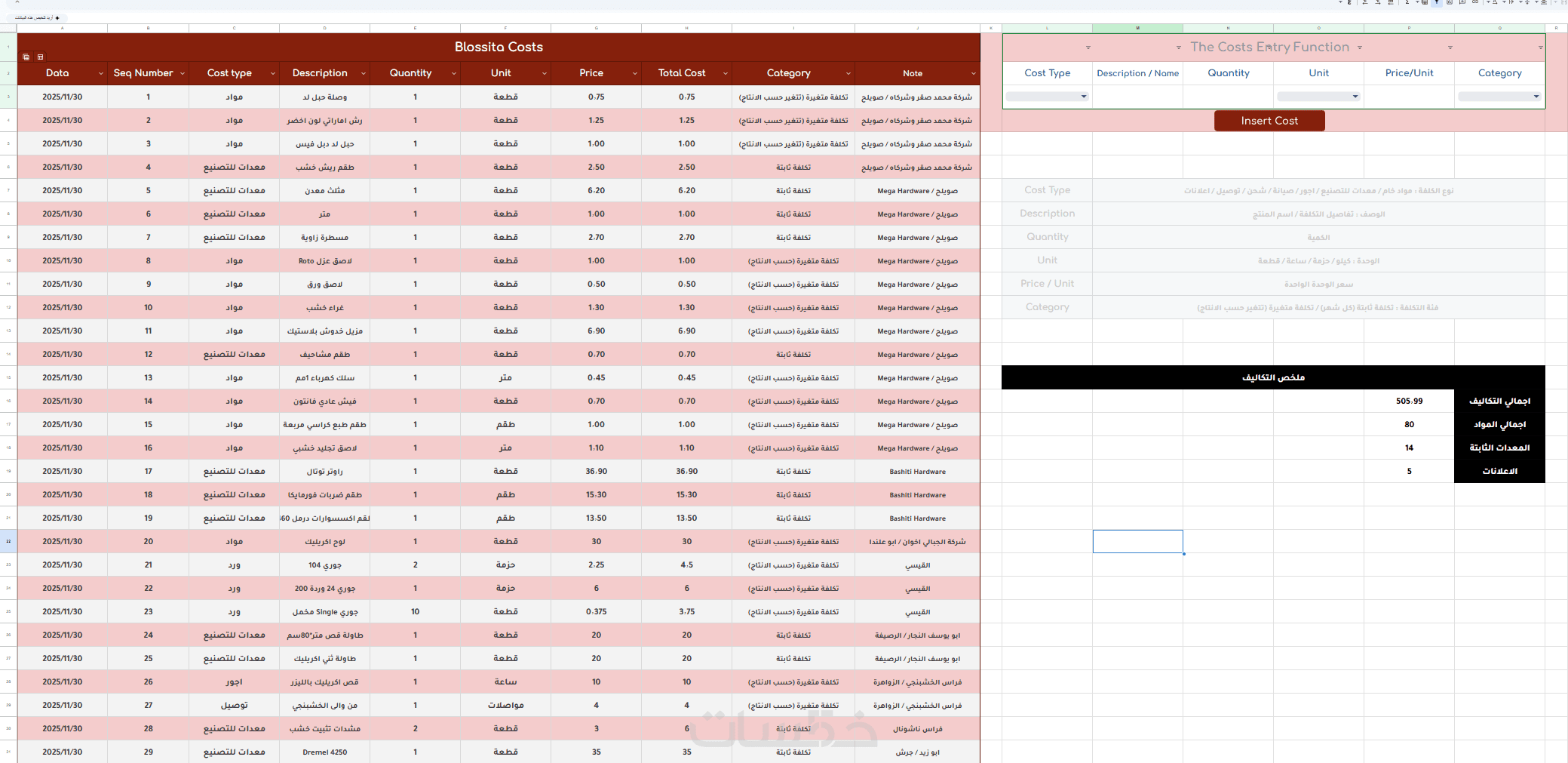 يمكنك من تتبع التكاليف والارباح وادخال المبيعات وحساب الربح تلقائيا