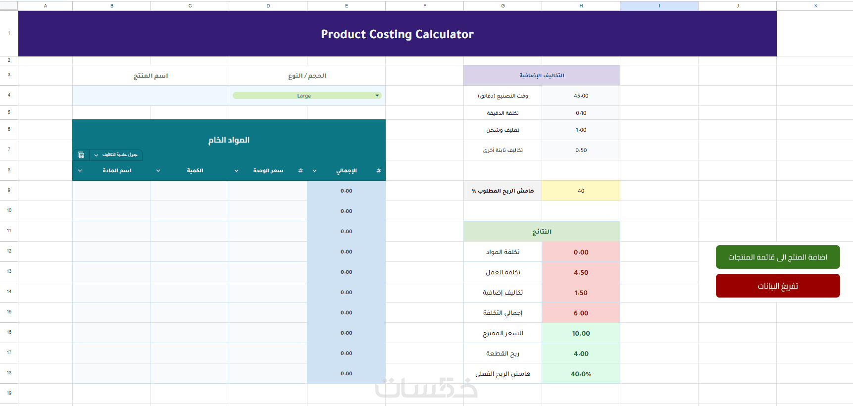 @ حاسبة تسعير المنتج: