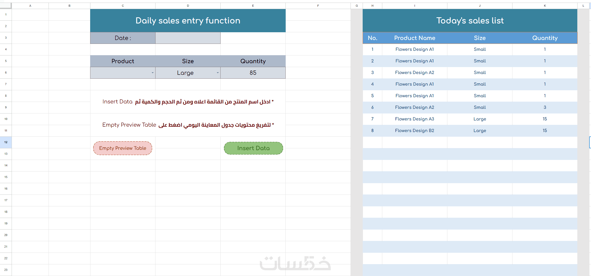 أدخل مبيعاتك بضغطة زر واحدة يحفظ تلقائياً مع التاريخ والكمية والإجمالي