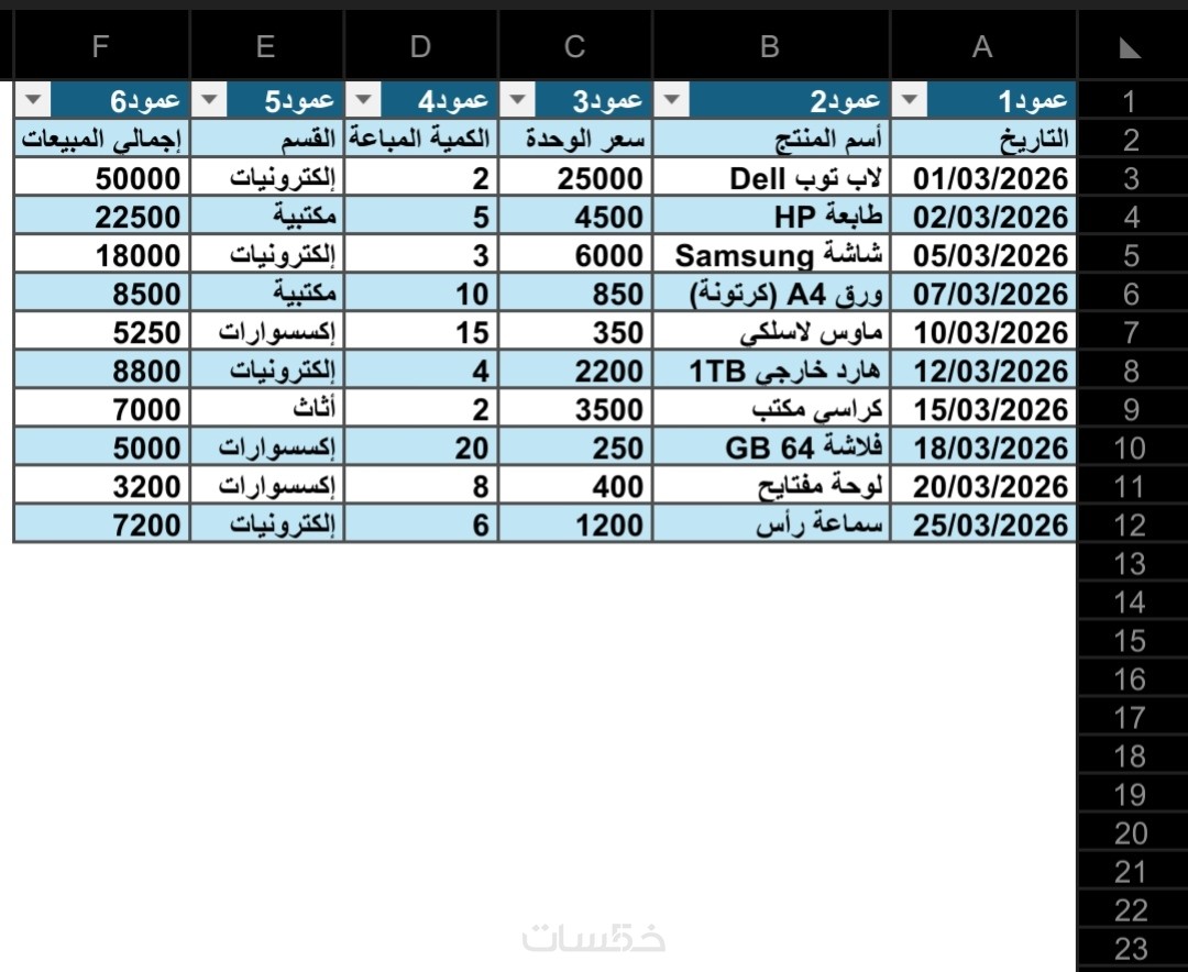 تسليم الملف بصيغة Excel أو رابط Google Sheets حسب رغبتك.