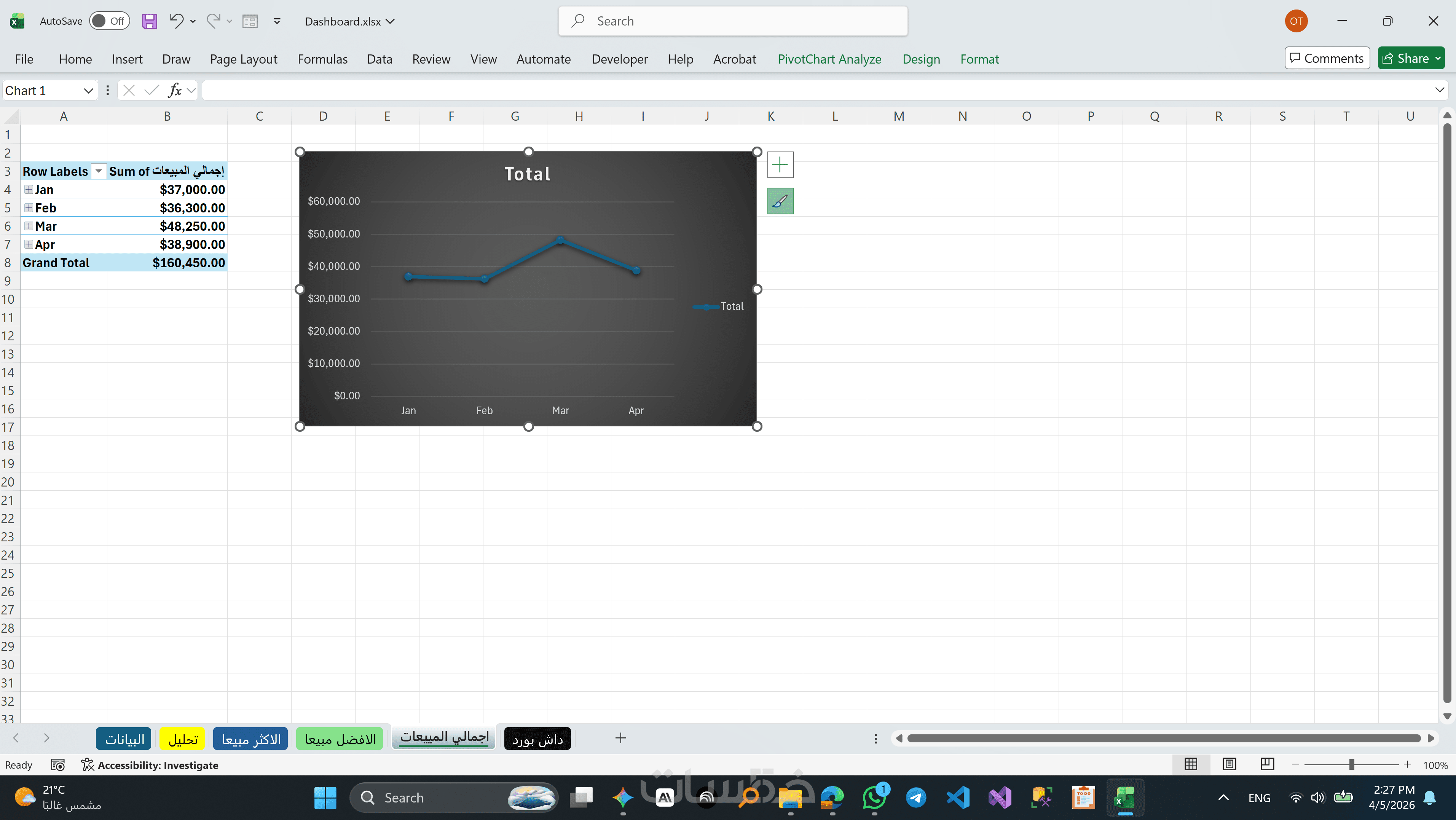 تحويل الأرقام إلى (Charts) بصرية جذابة (أعمدة، دوائر، خطوط بيانية) لسهولة المقارنة