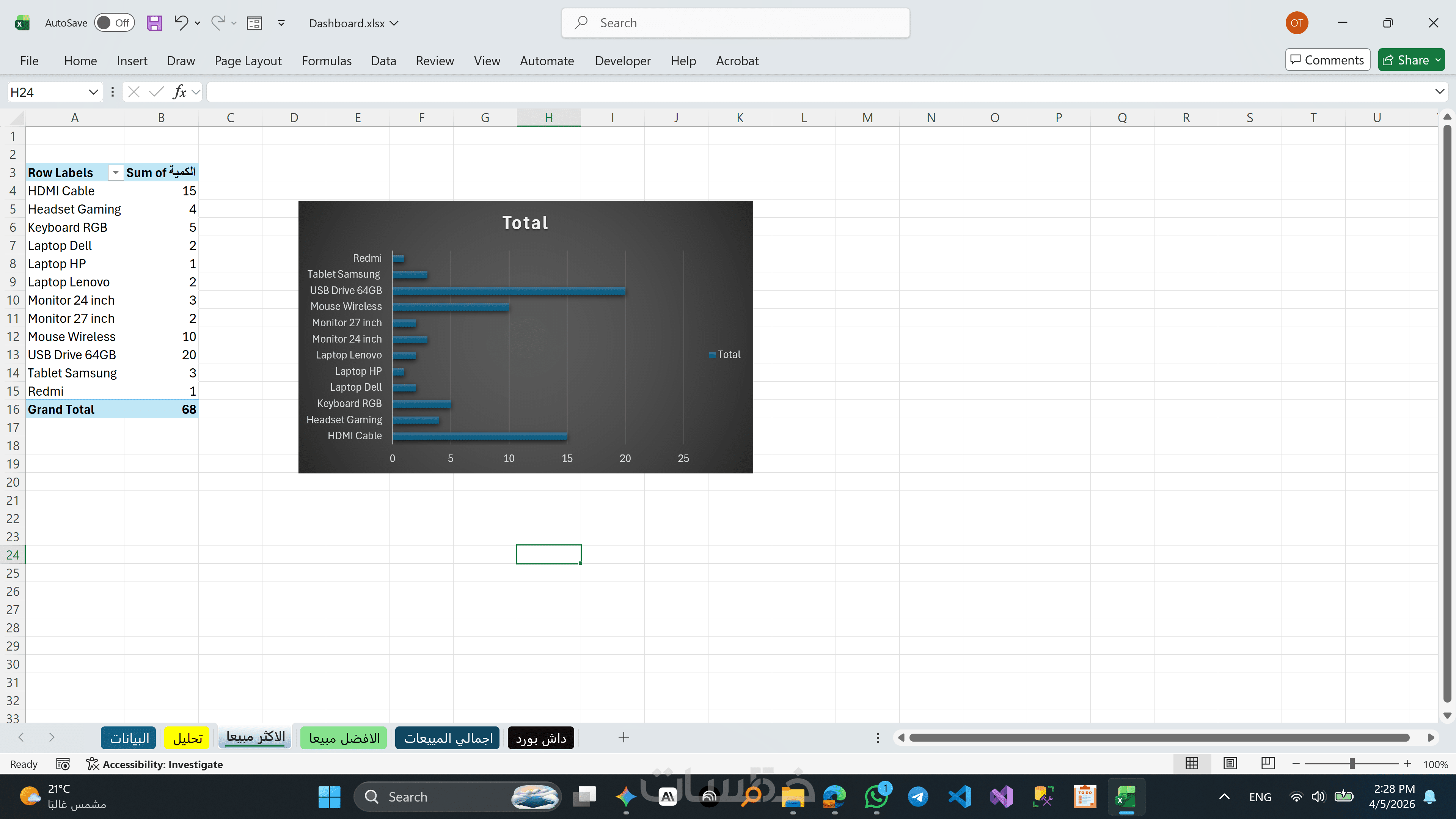 اقوم بتحليل وتنسيق حتى 500 سجل (Row) من البيانات، وتصميم لوحة تحكم تفاعلية (Dashboard) تضم 4 رسوم بيانية (Charts) احترافية