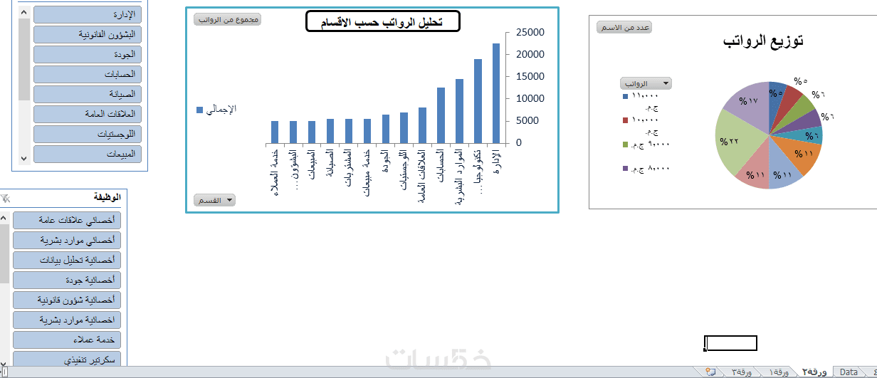 - استخدام الدوال الحسابية مثل (SUM-COUNTA-MIN-MAX-AVERAGE) لتحليل البيانات