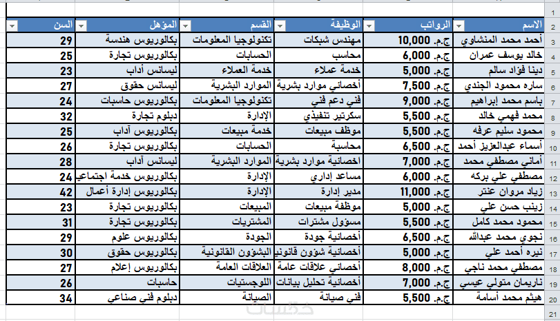 -حساب الرواتب والإجماليات والمتوسطات تلقائيًا