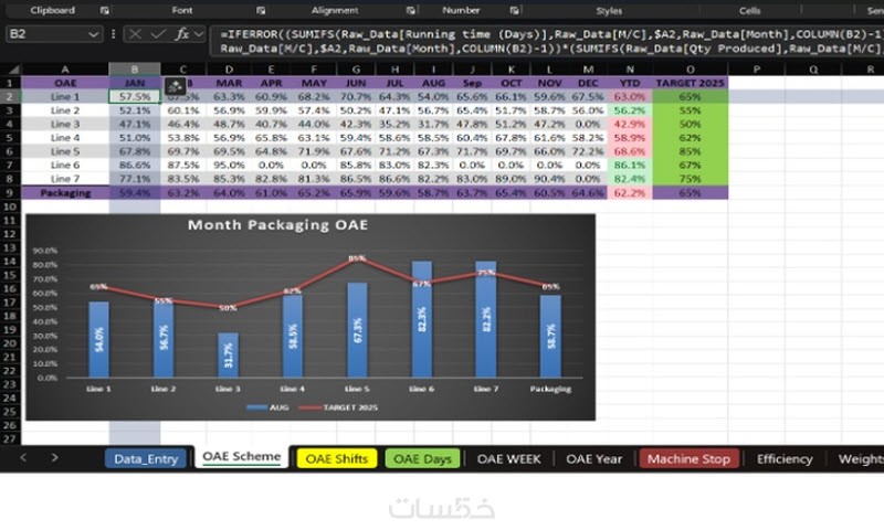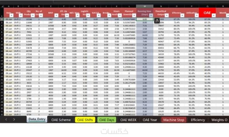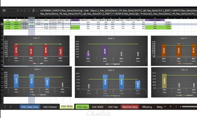 ادخال البيانات علي الاكسيل وعمل المعدلات والرسوم البيانيه اللازمة