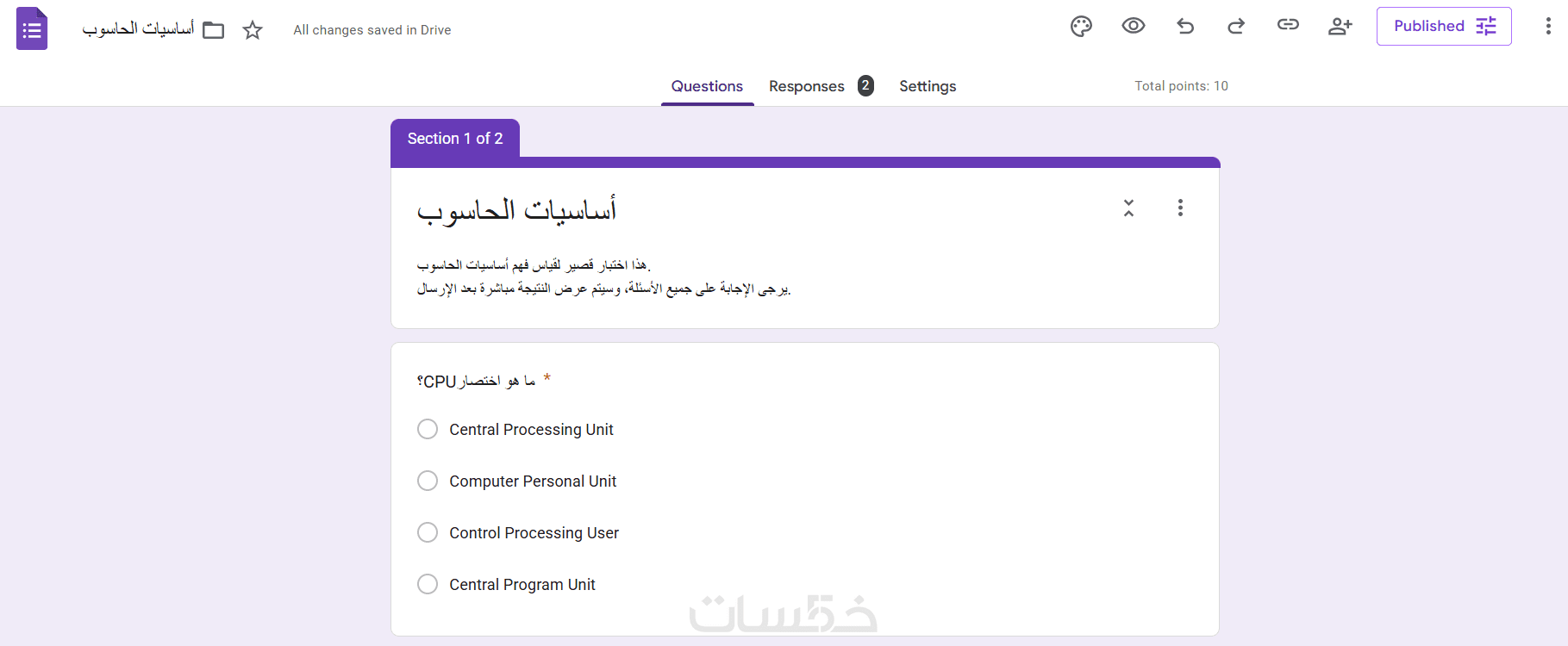 * إضافة حتى 20 سؤال (اختيار من متعدد، صح/خطأ، إجابة قصيرة) أو في شكل استبيان