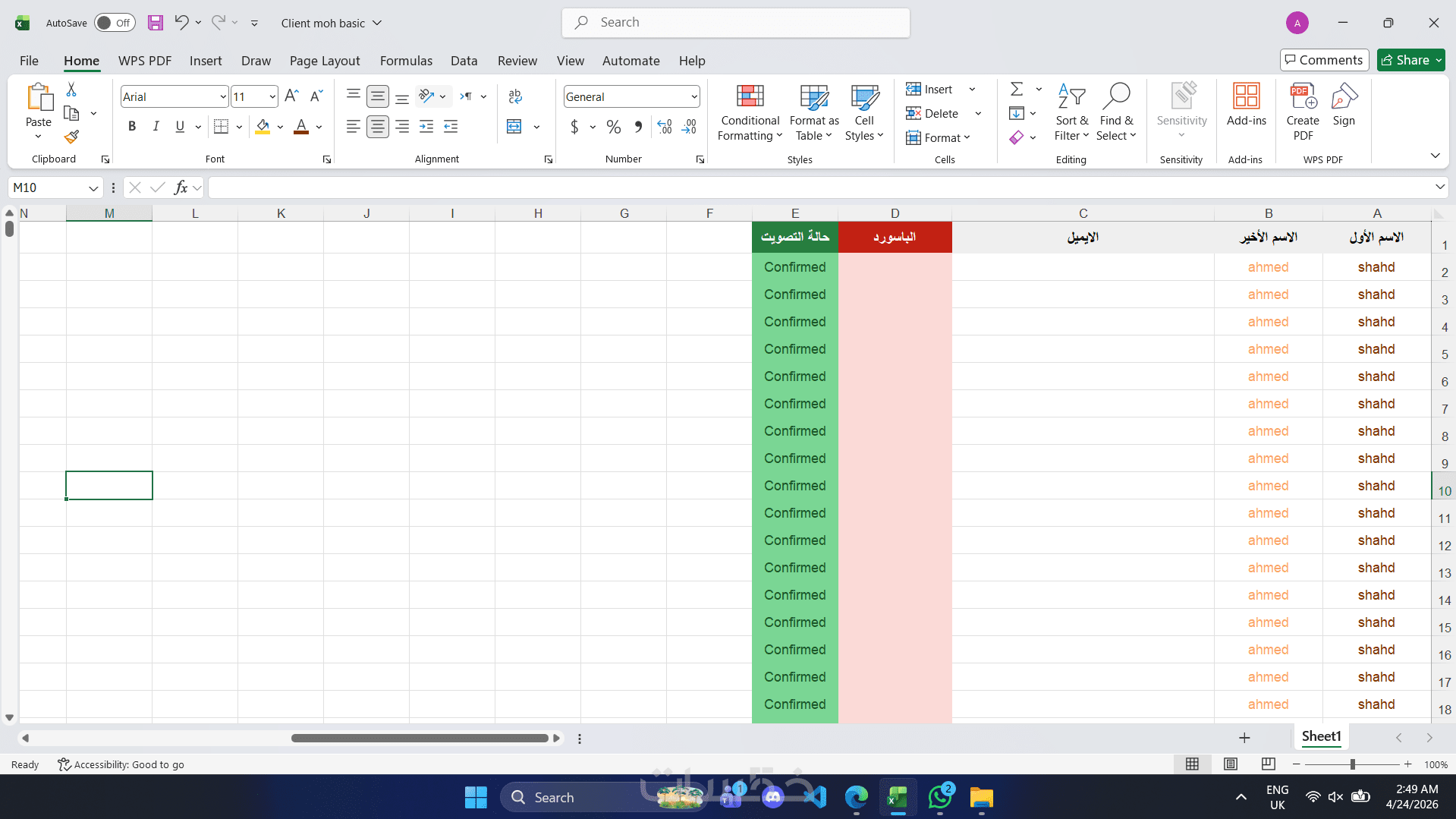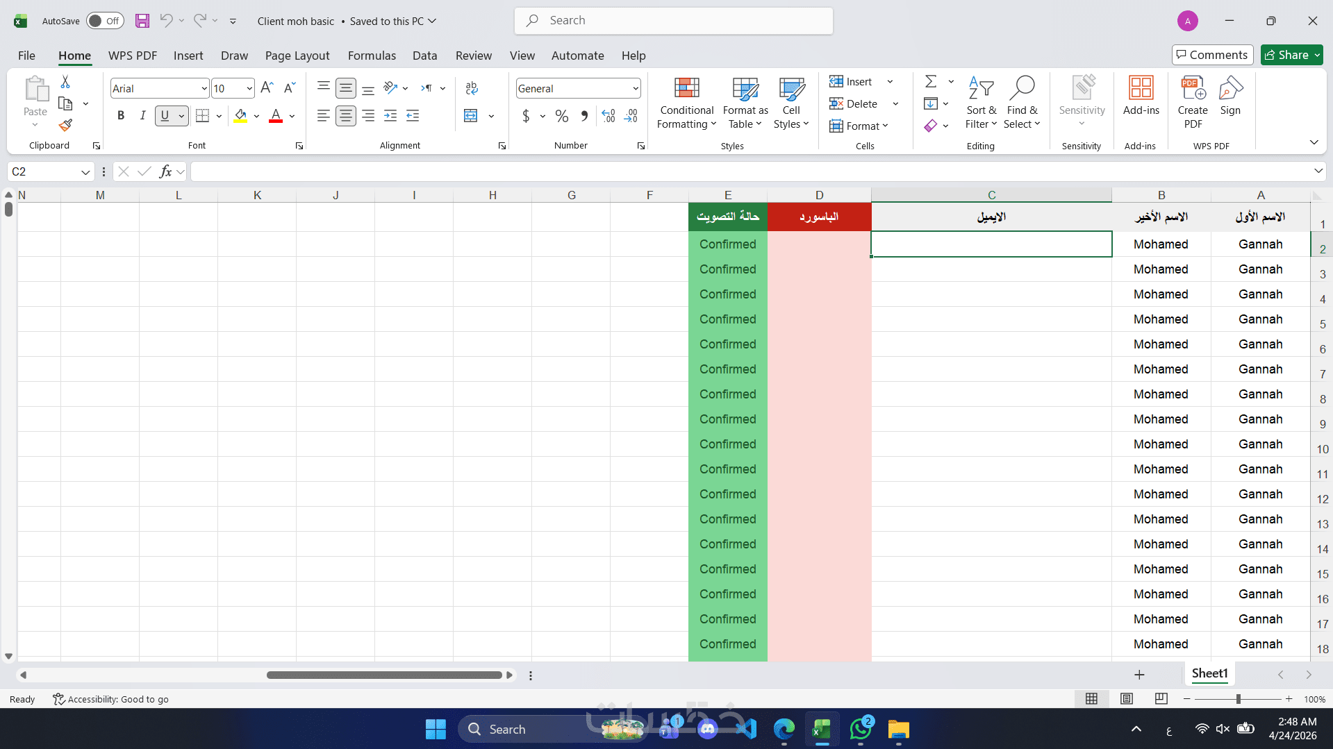 سيتم تسليم ملف Excel يحتوي على البيانات المدخلة بشكل منظم مع عناوين واضحة للأعمدة وسهولة في التصفح.