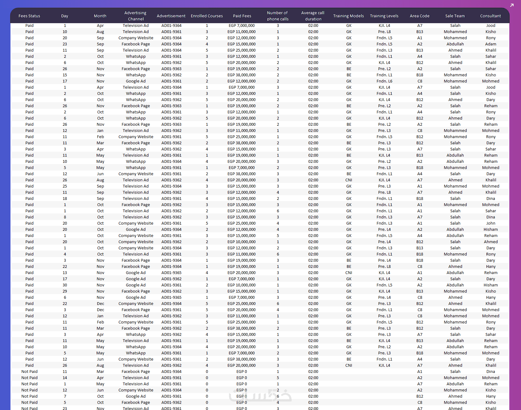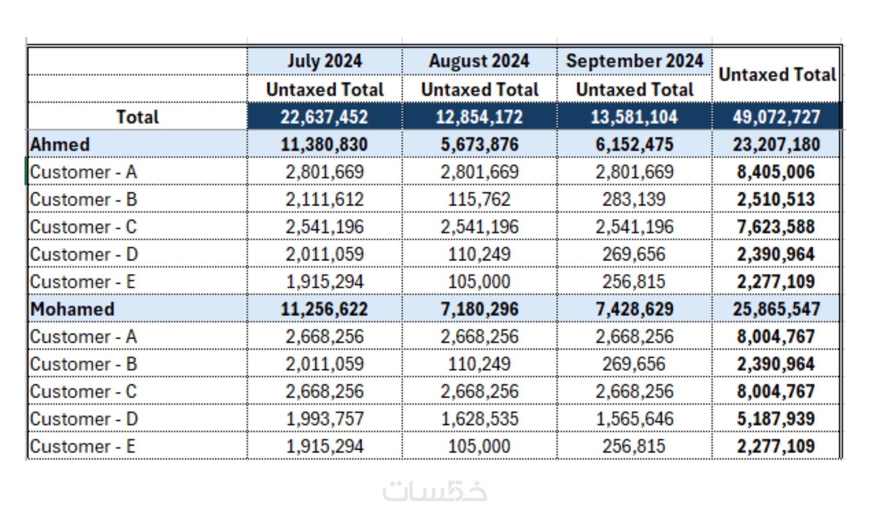سأساعدك بتحضير بياناتك في برنامج الاكسل بمخرجات محترفة