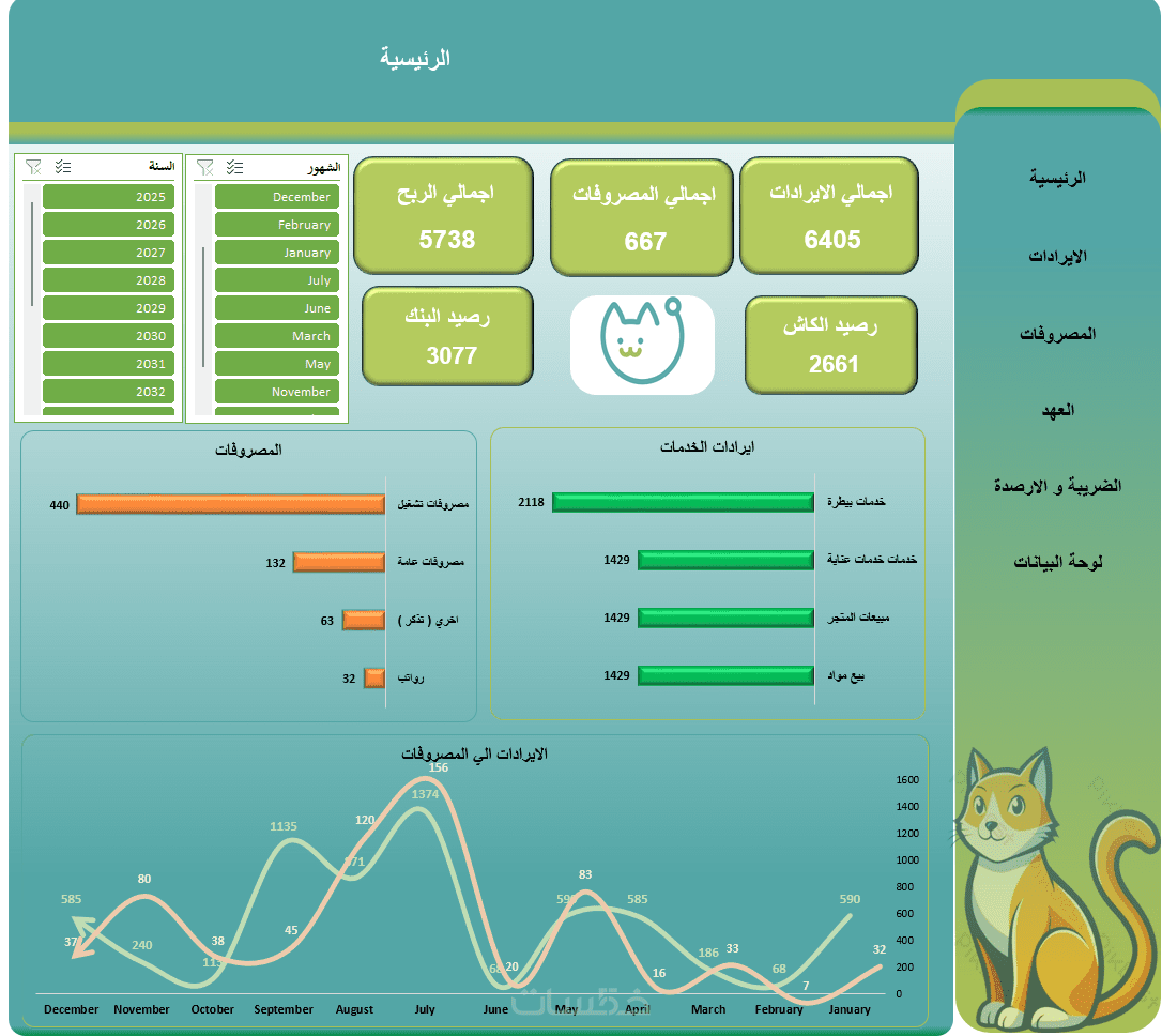 تصميم جدول إكسل ذكي بواجهات تفاعلية وصفحات لتحليل البيانات