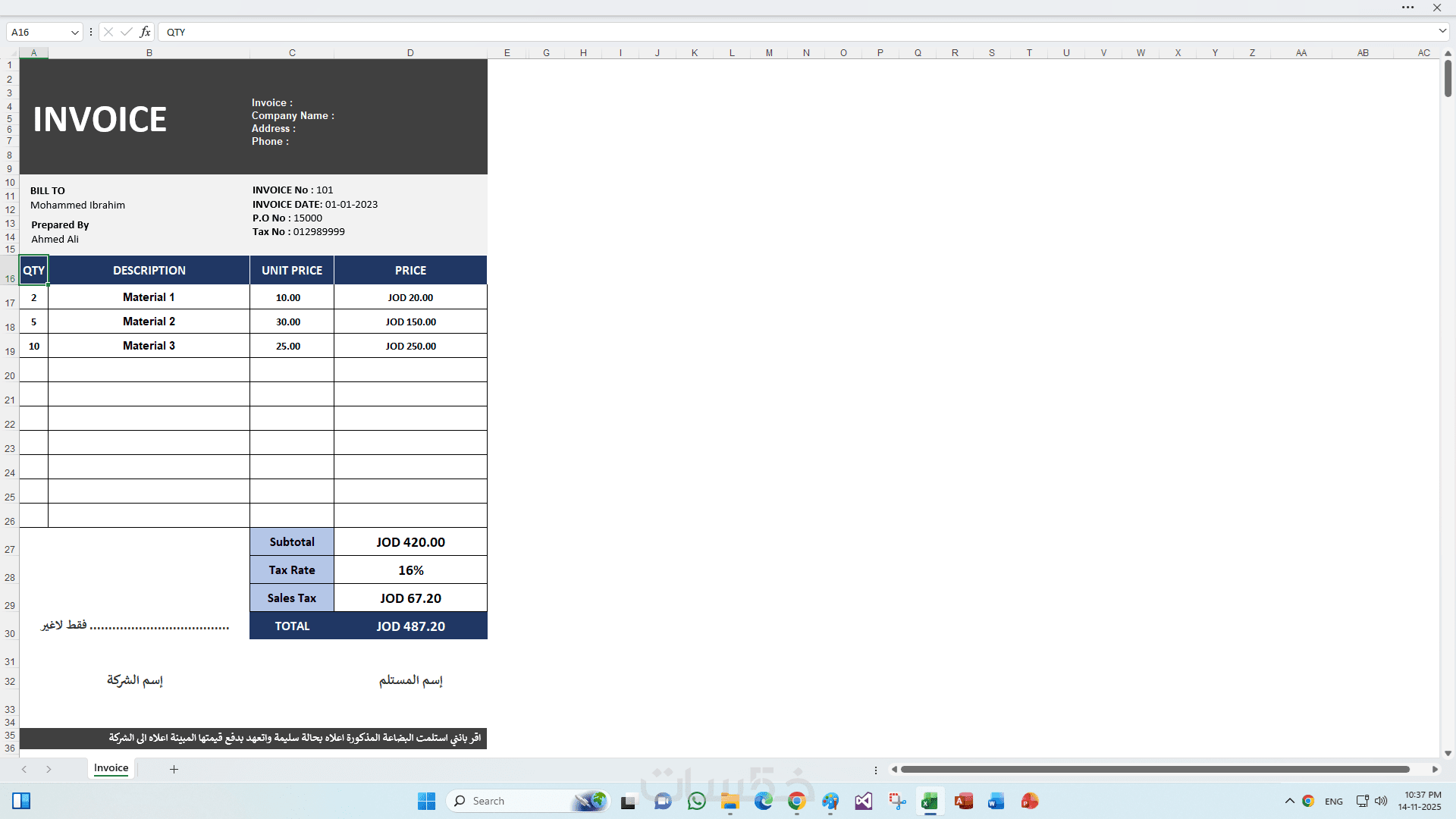 تصميم جدول اكسل ذكي يتفاعل مع ماتقم به من اعمال