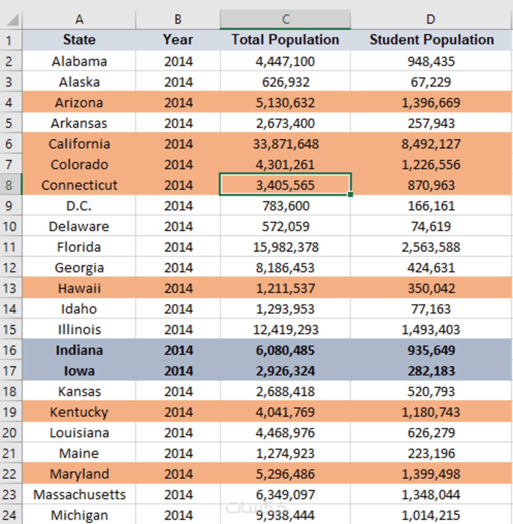 تنسيق الأعمدة والصفوف بشكل منظم وسهل القراءة.