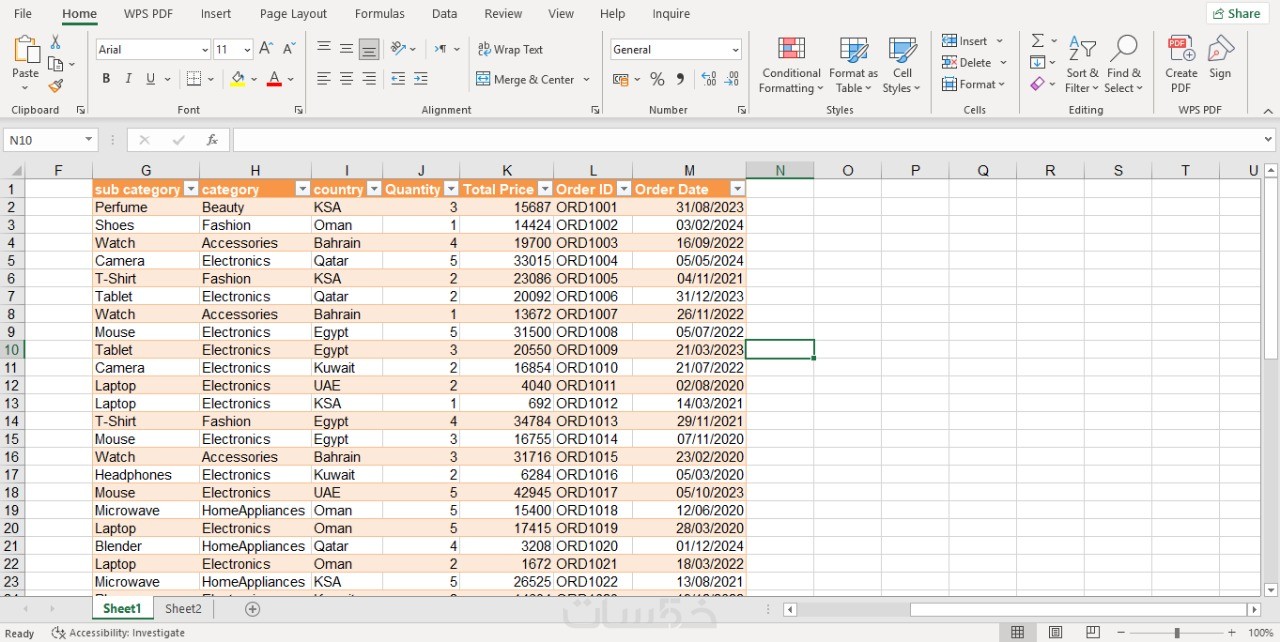 ملف Excel منظم بعد تنظيف البيانات، خالٍ من التكرار والأخطاء، ويحتوي على Pivot Tables وتقارير واضحة جاهزة للاستخدام.