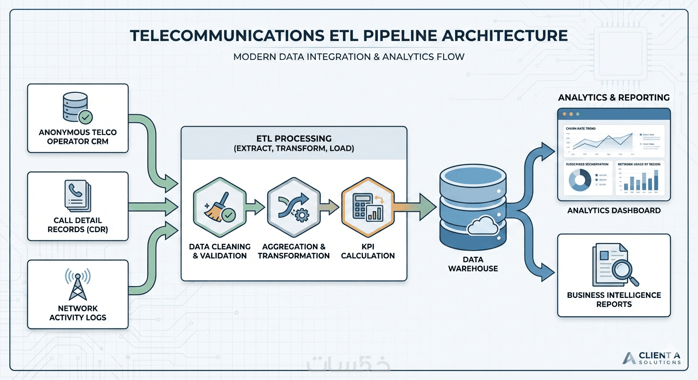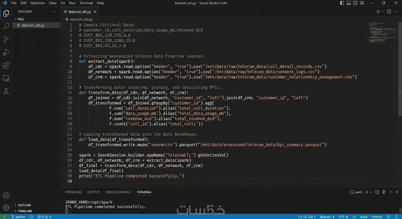 دليل PDF يشرح خطوات ETL، إعدادات المراقبة، وكيفية التشغيل.