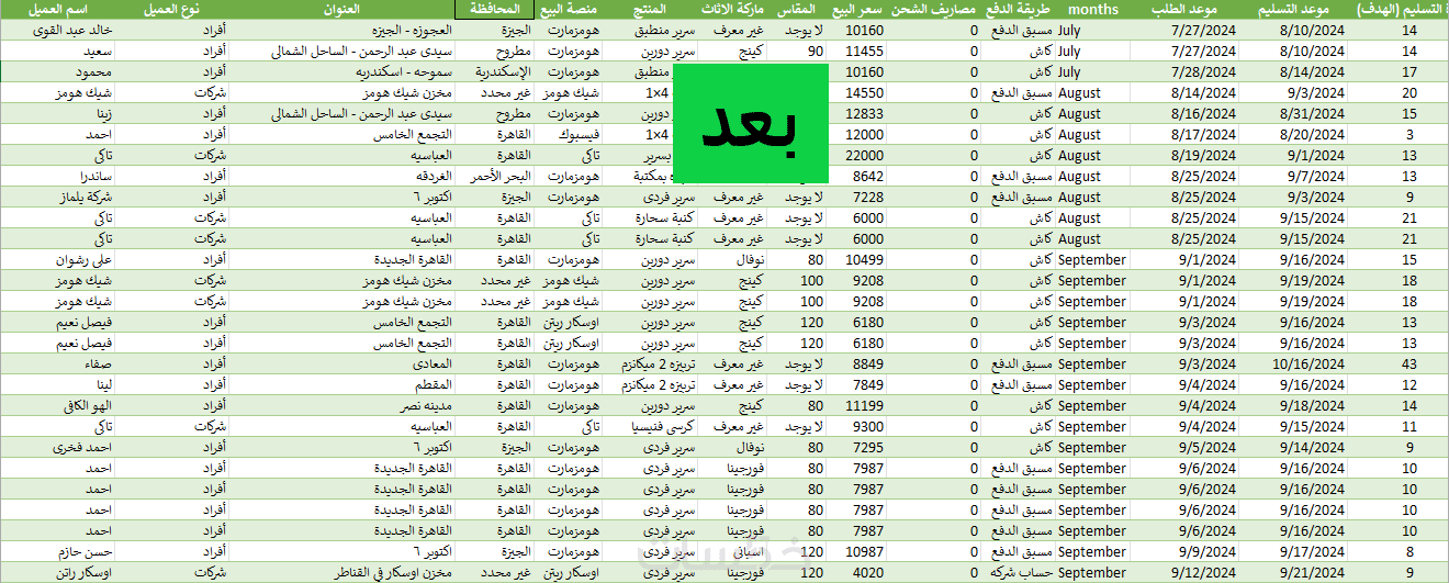 ↩ بدلًا من مشهد شيت البيانات الفوضوى ستحصل على جدول منظم بفلاتر تساعدك على الوصول السريع لتفاصيل التى تختارها.