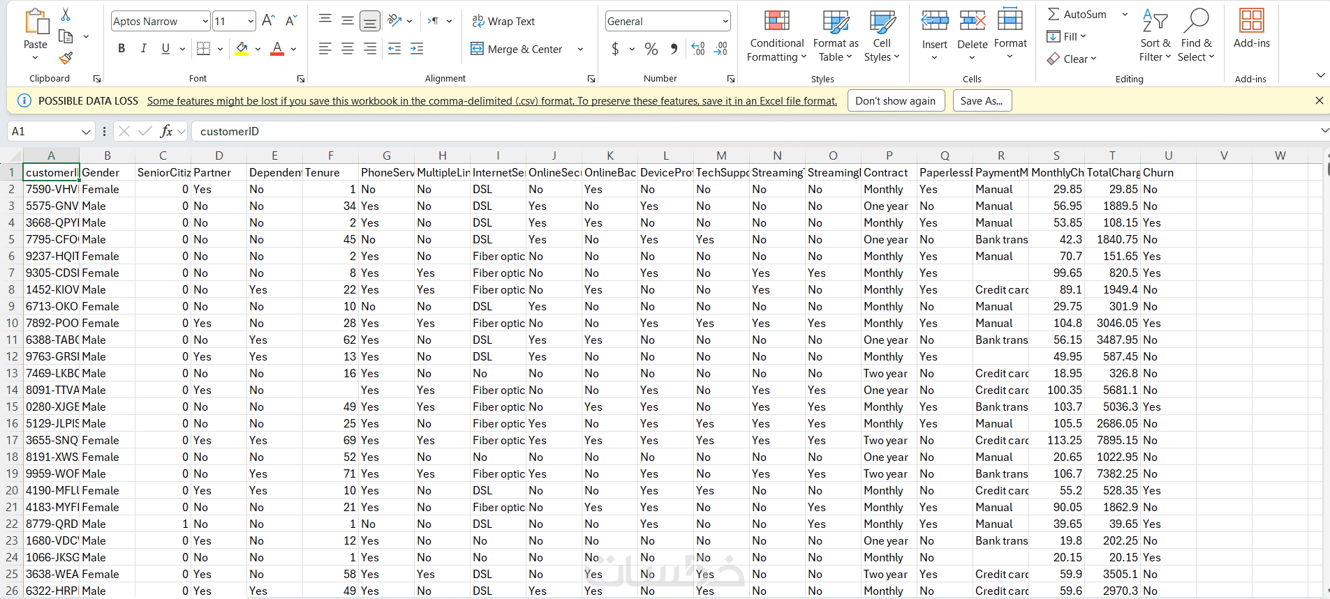 تسليم الملف بصيغة Excel أو CSV