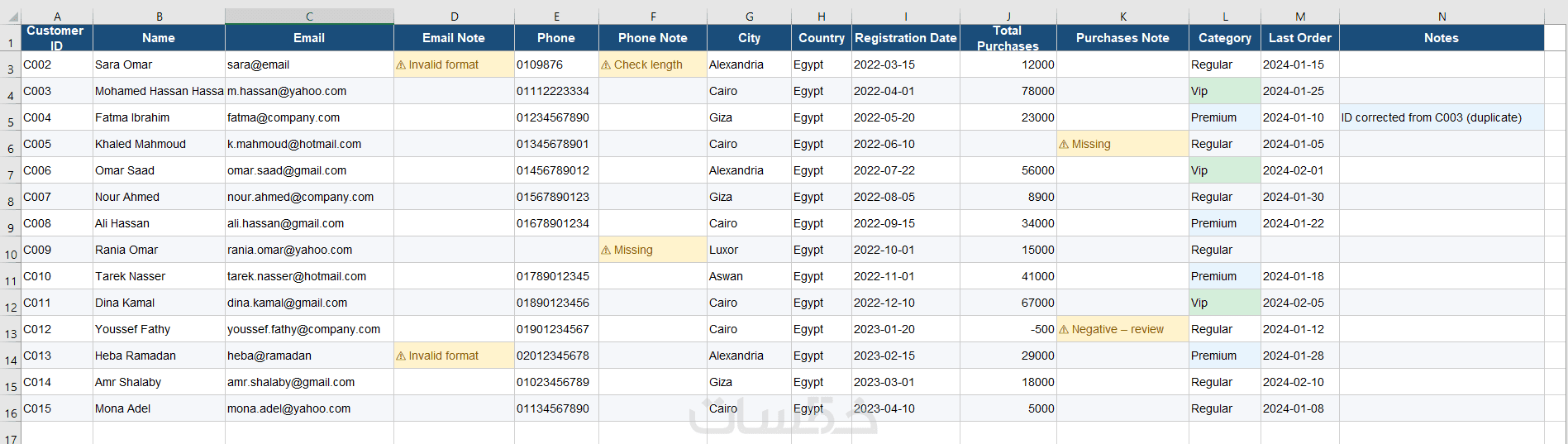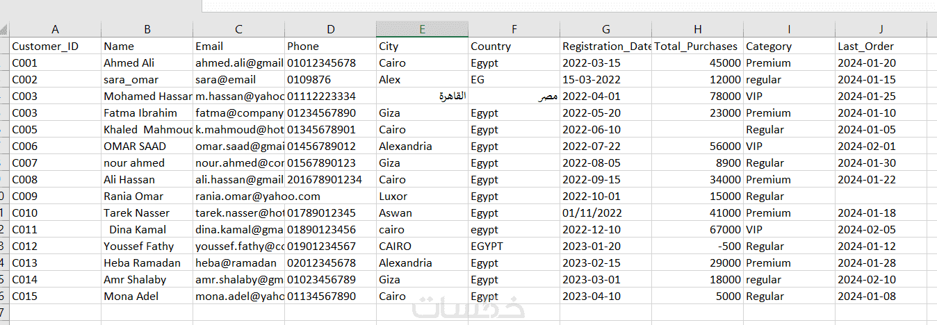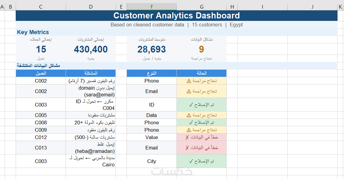 سأقوم بتنظيف وتنظيم بياناتك في Microsoft Excel لتصبح جاهزة للتحليل والاستخدام.