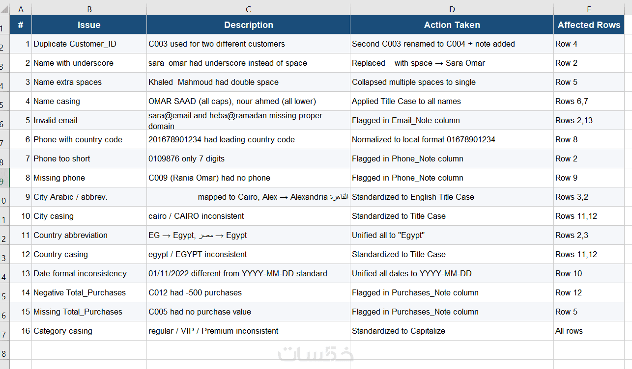 تنظيف وتنظيم 500 صف من البيانات في Excel.