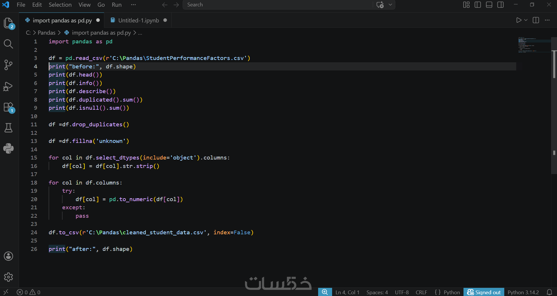 لو عندك بيانات فيها أخطاء أو غير منظمة، هأساعدك أحولها لبيانات نظيفة وجاهزة للاستخدام بشكل احترافي باستخدام Python وPandas.