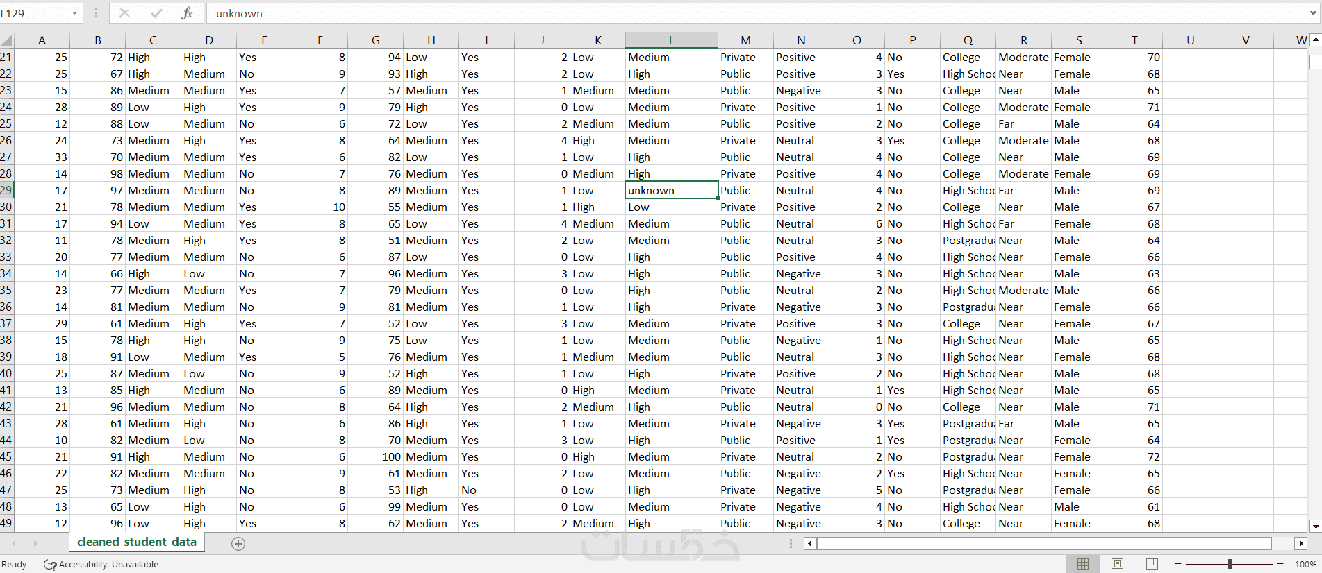 - ملف بيانات نظيف بعد معالجة الأخطاء والتكرار